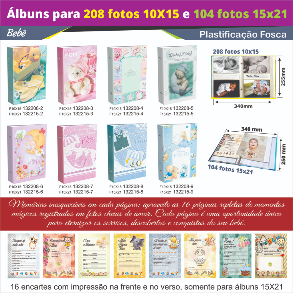 ALBUM FOTOGRÁFICO DO BEBÊ 10X15 PARA 208 FOTOS MENINO MENINA VÁRIOS MODELOS LINDOS