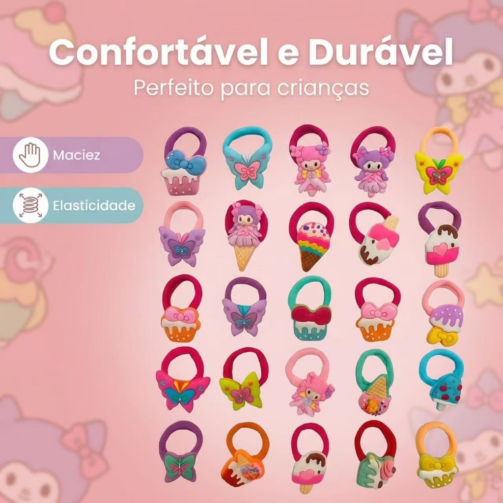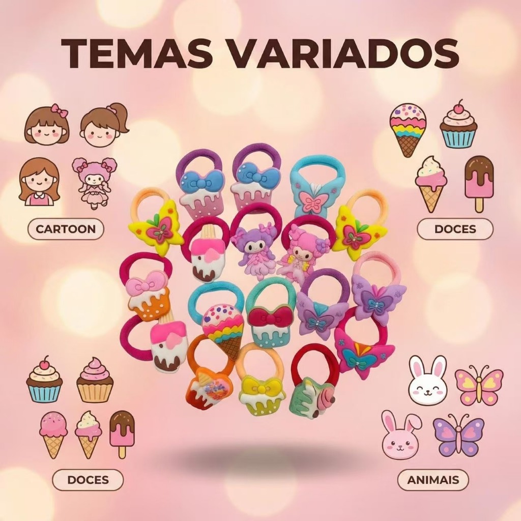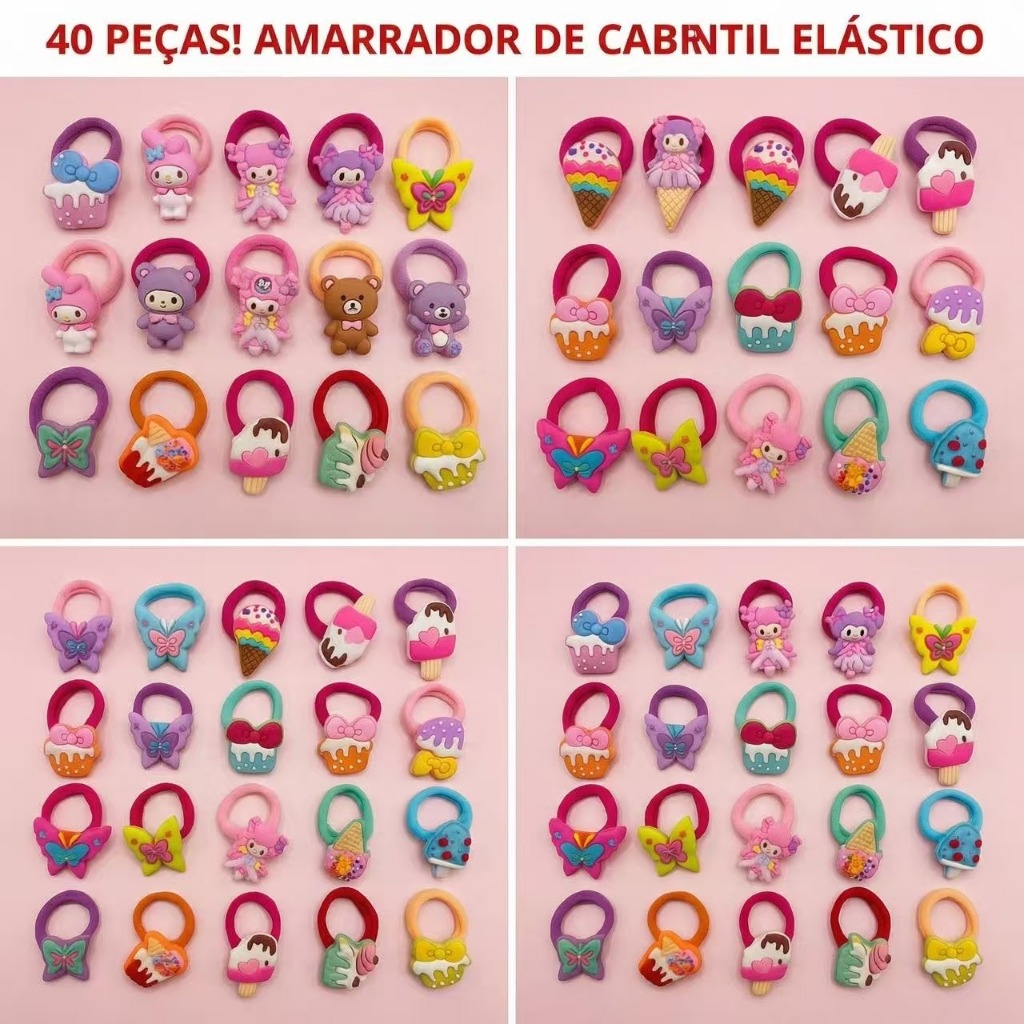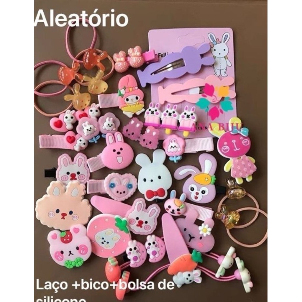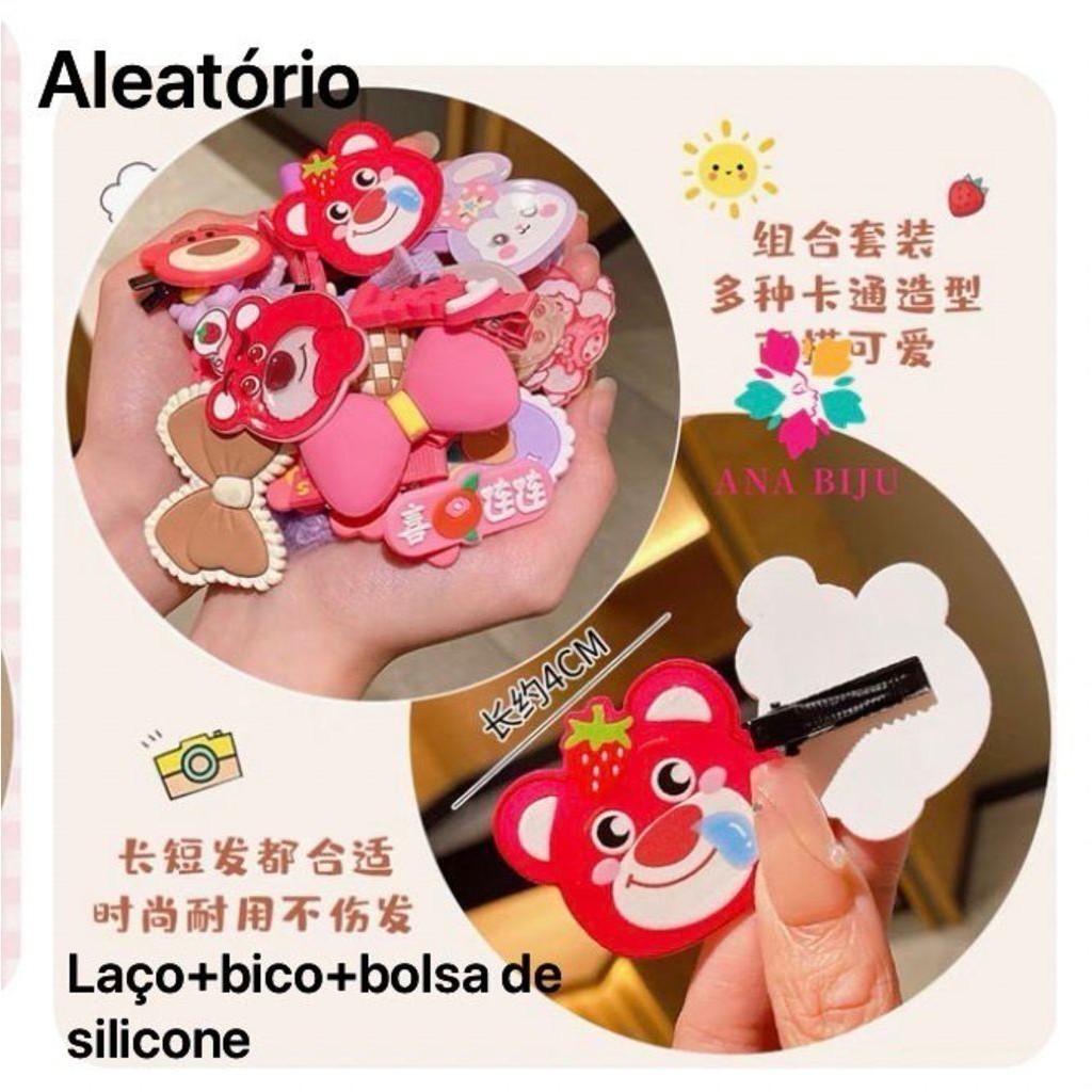 ANA 1108 Kit 40 unidades Lacos de Bico de pato/Tic tac+ Rabico Com Desenho de Silicone Infantil Acessórios Para Cabelo