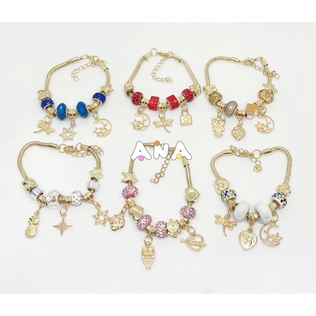 ANA 1108 Pulseira Berloques Prateada Estilo Feminina /Modelo aleatório