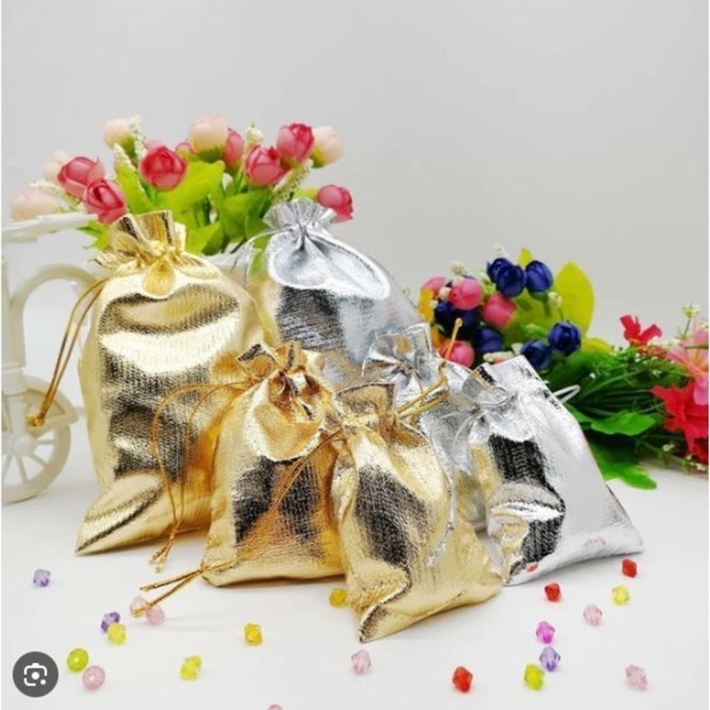 ANA 50 unidades Saquinhos de Organza Presente-vários tamanhos(Cor Prata e Dourado / Guardar Lembrancinhas)
