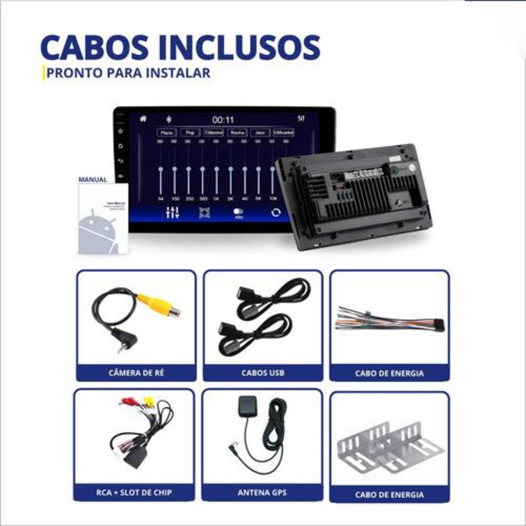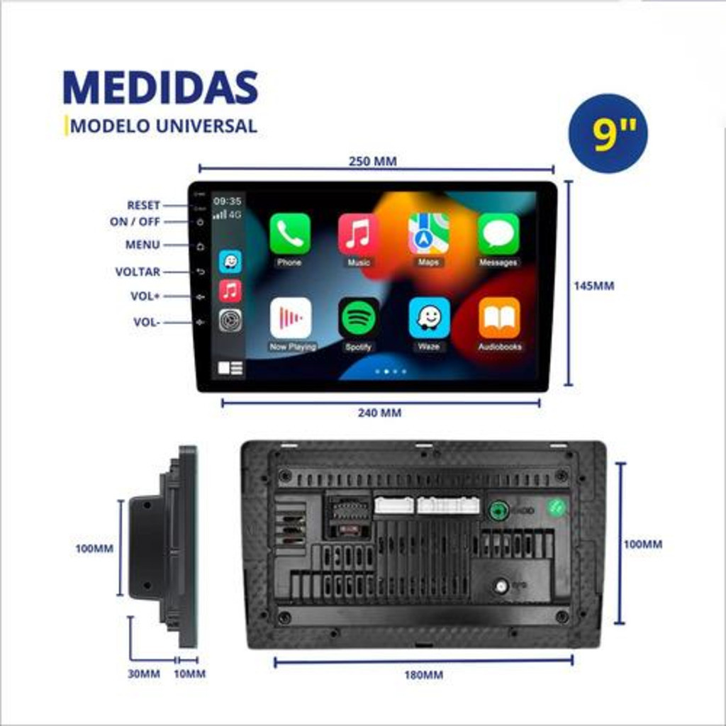 ANDROID13 9 POLEGADAS 4G+64G COM CARPLAY CPLINK pode inserir chip 8CORE- Entrada Chip 4G + Cam Ré