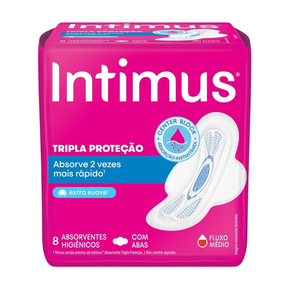 Absorvente Intimus Tripla Proteção Cobertura Extra Suave com Abas Embalagem com 8 Unidades