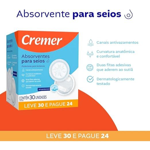Absorvente para Seios Cremer - 30 Unidades