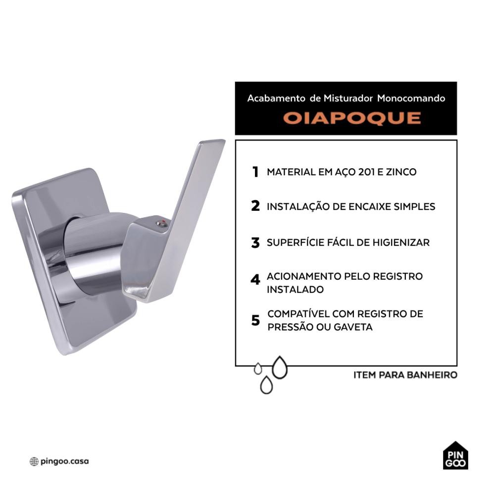 Acabamento de Misturador para Banheiro Oiapoque Pingoo - Prata