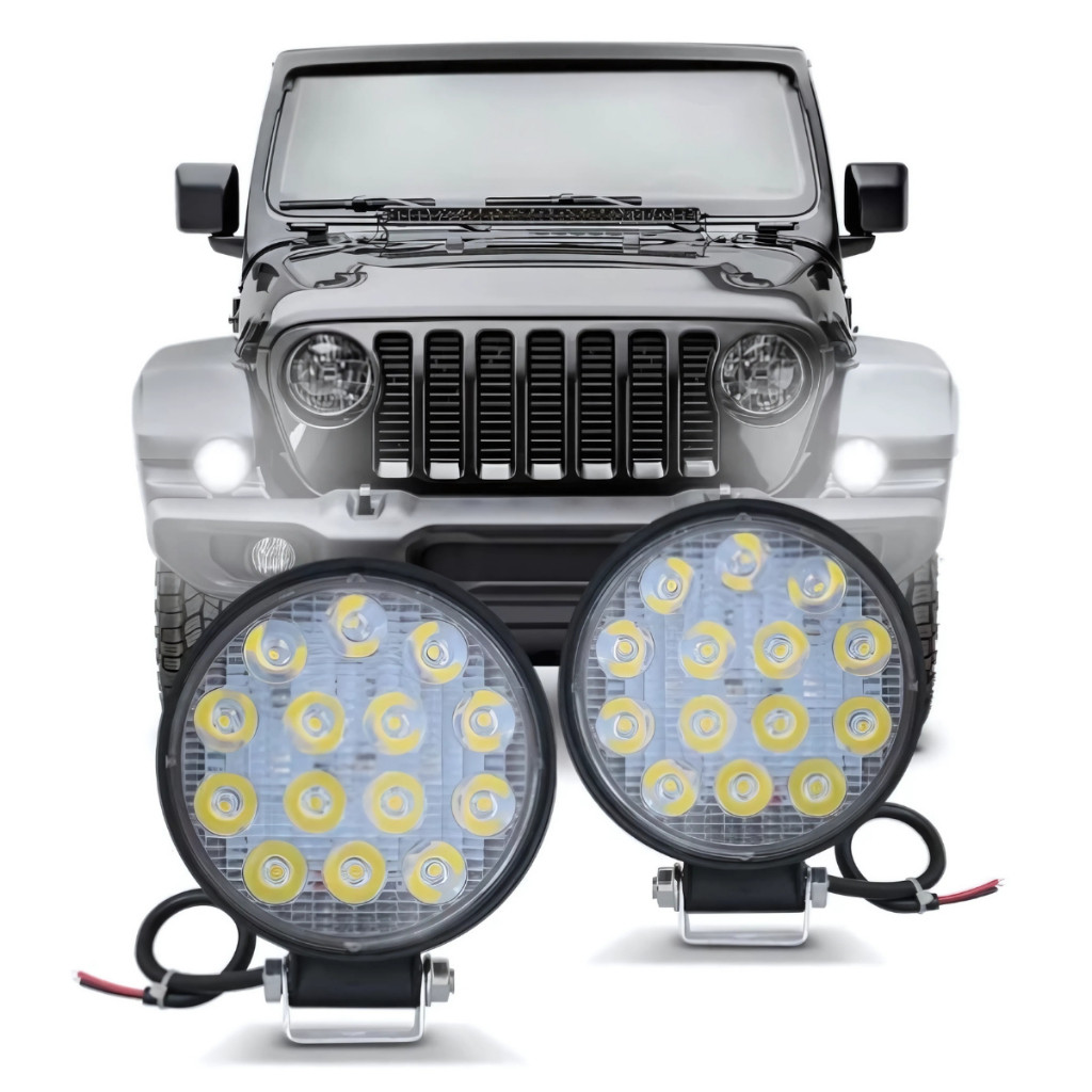 Acessórios Para Carro Kit 2 Farol Milha 14 Leds 42w 12v/24v Redondo Off-road 6000k