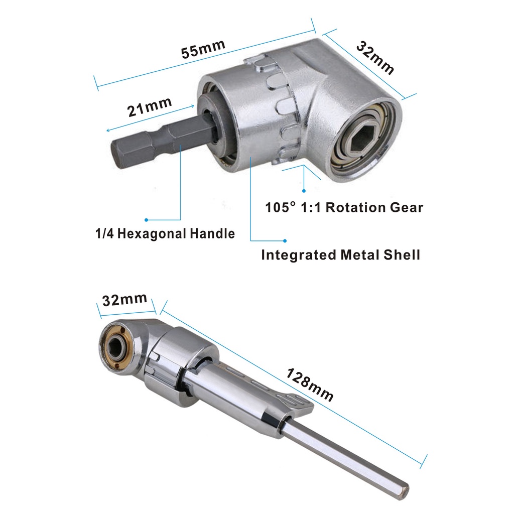 Adaptador Angular Curto ou Longo Para Parafusadeira e Furadeira 105°