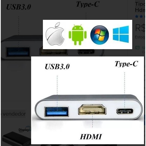 Adaptador Hdmi Para Nitendo Switch Garantia -Usb Type C Para Hdmi - Pronta enytrega Envio do Brasil