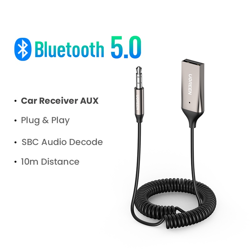 Adaptador Mãos-Livres UGREEN Bluetooth 5.3 Aux Sem Fio Para Áudio Automotivo Receptor USB Conector De 3.5mm Alto-Falante