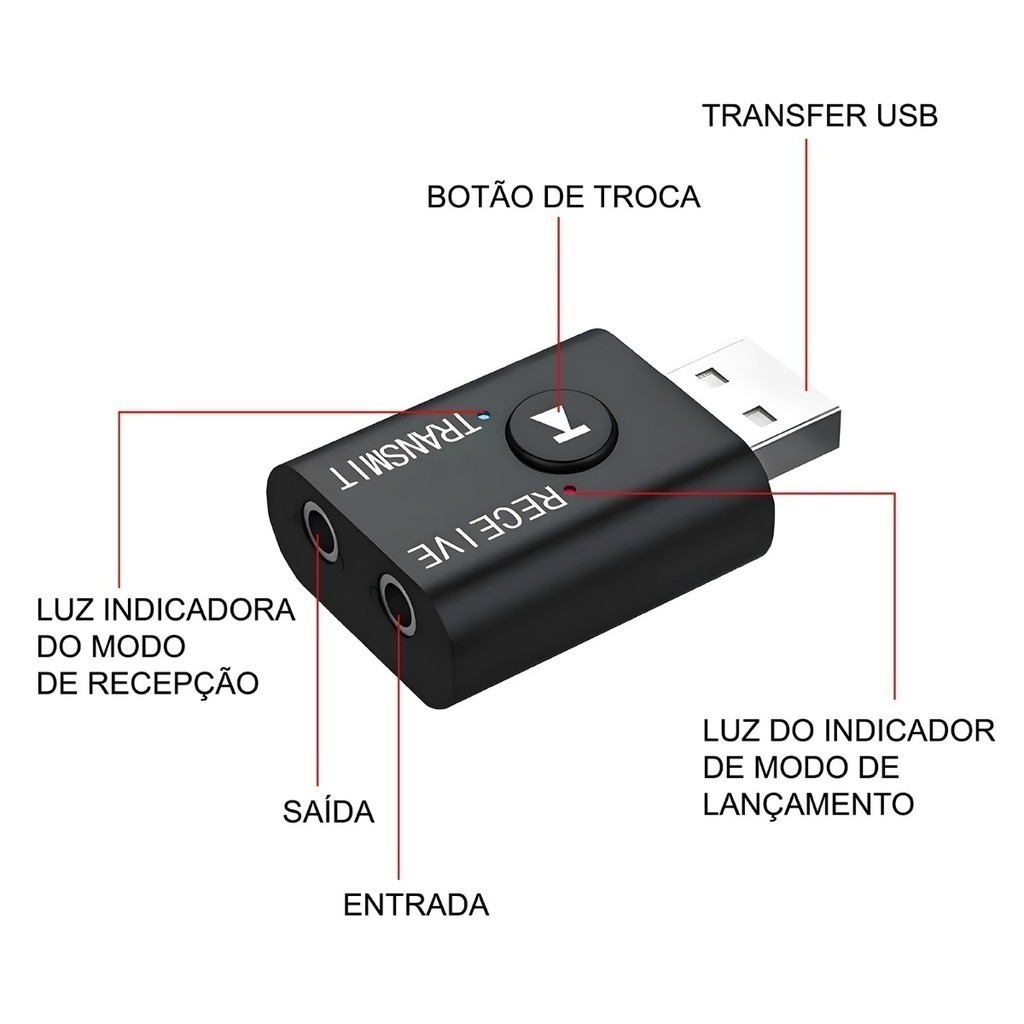 Adaptador Receptor Transmissor de Áudio e Vídeo via Bluetooth 5.0 +Cabo Auxiliar P2 X-Cell XC marisa