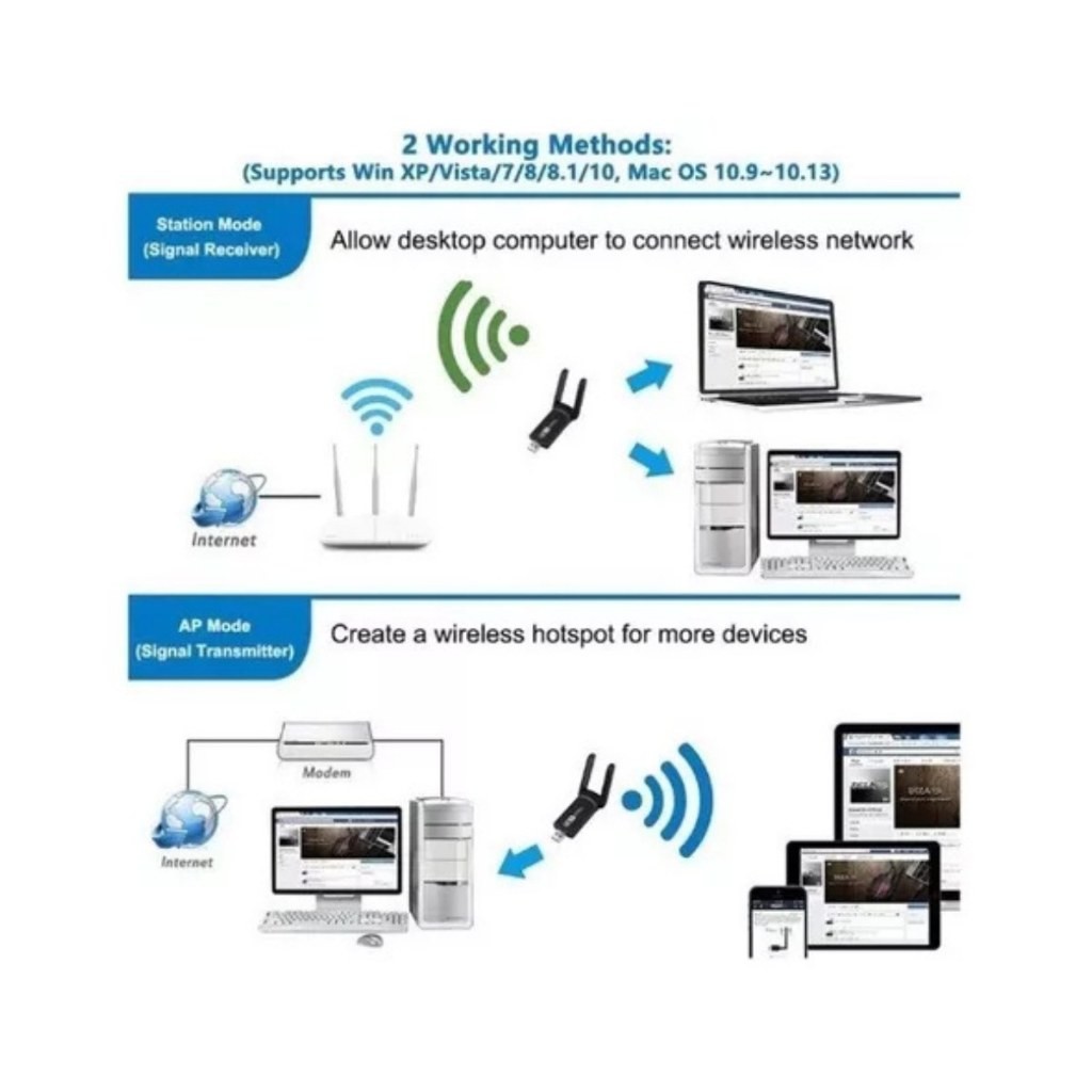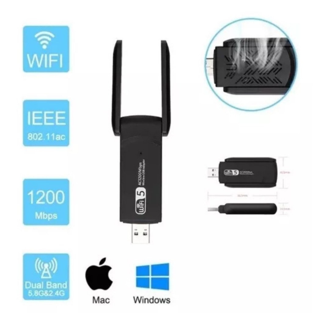 Adaptador Wifi 5ghz Usb 3.0 Dual Band 5g Ac 1300mbps Pc Note