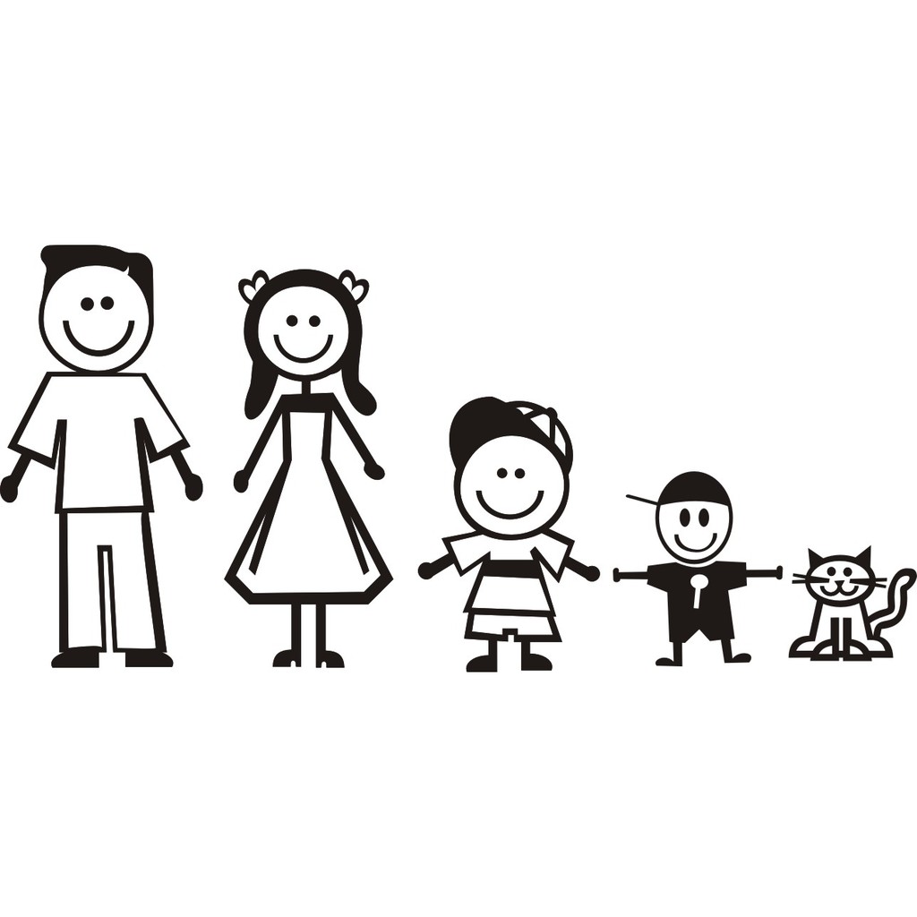 Adesivo Familia Feliz - Pai, Mae, Filho, Bebe, Gato - 18x9cm