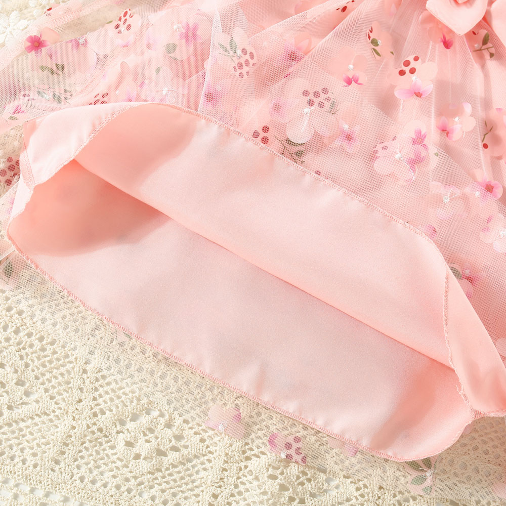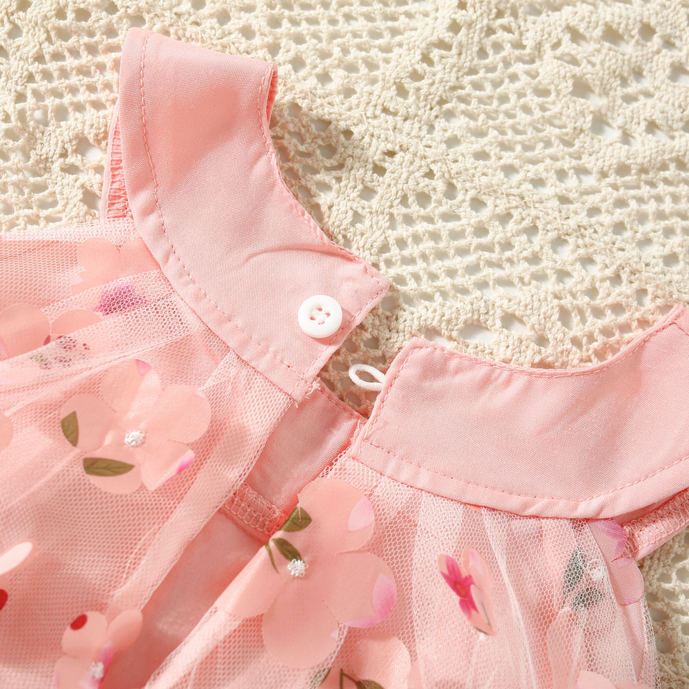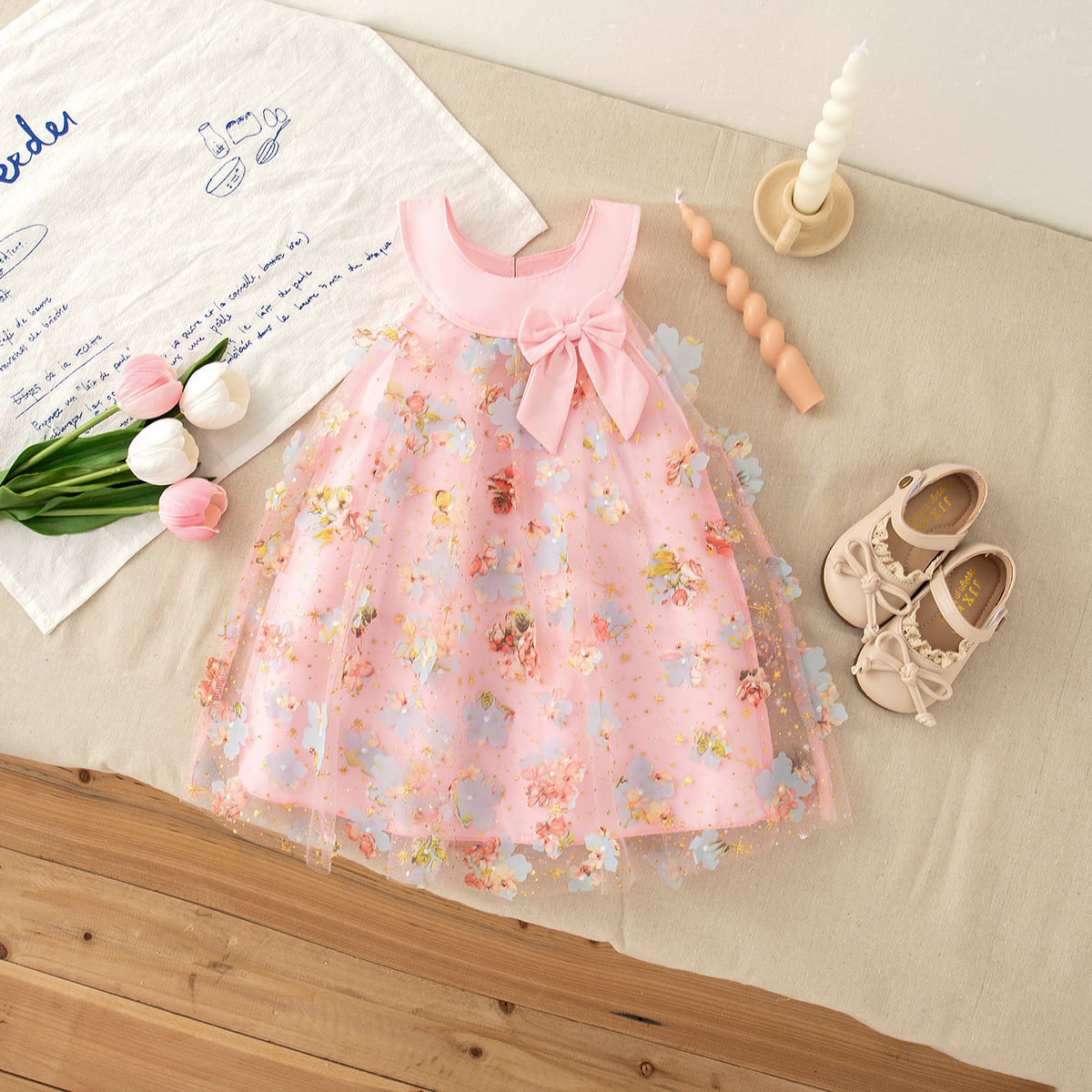 Adorável Vestido Infantil Feminino Sem Mangas Rosa Com Estampa Floral , Perfeito Para Festas E Uso Diário