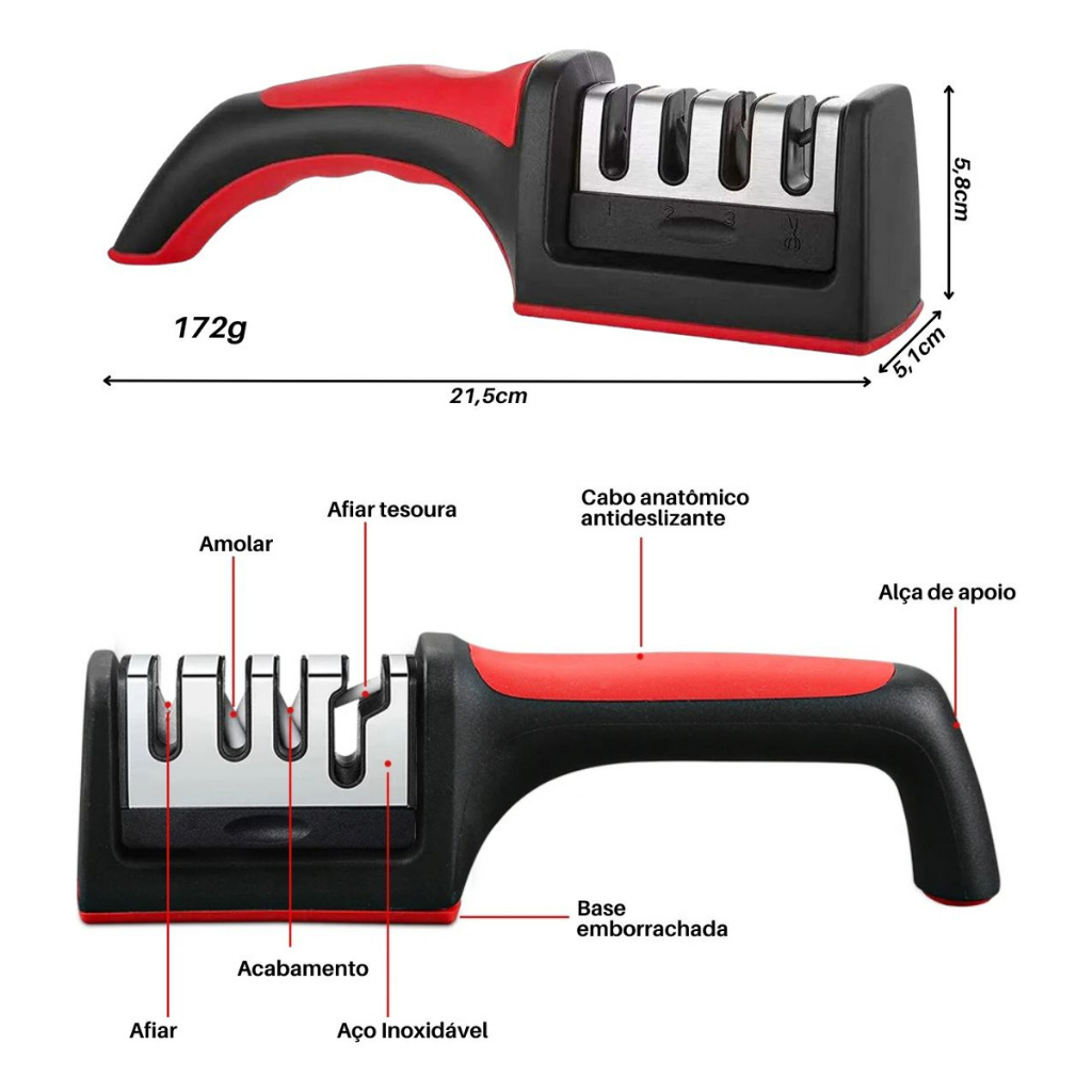 Afiador 1/2/3 un de Faca Amolador Tesoura Profissional 4 em 1 Aço Inox Seguro com 4 Afiadores
