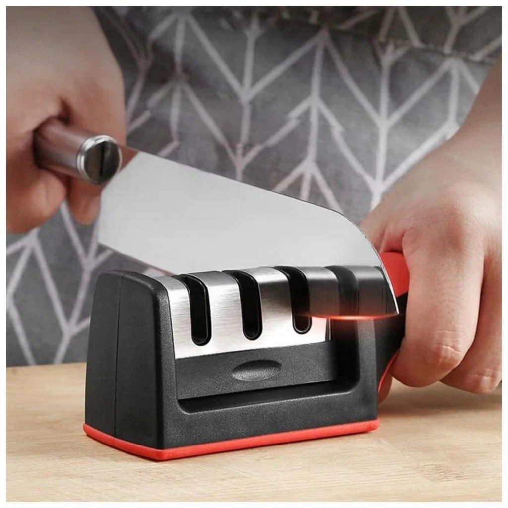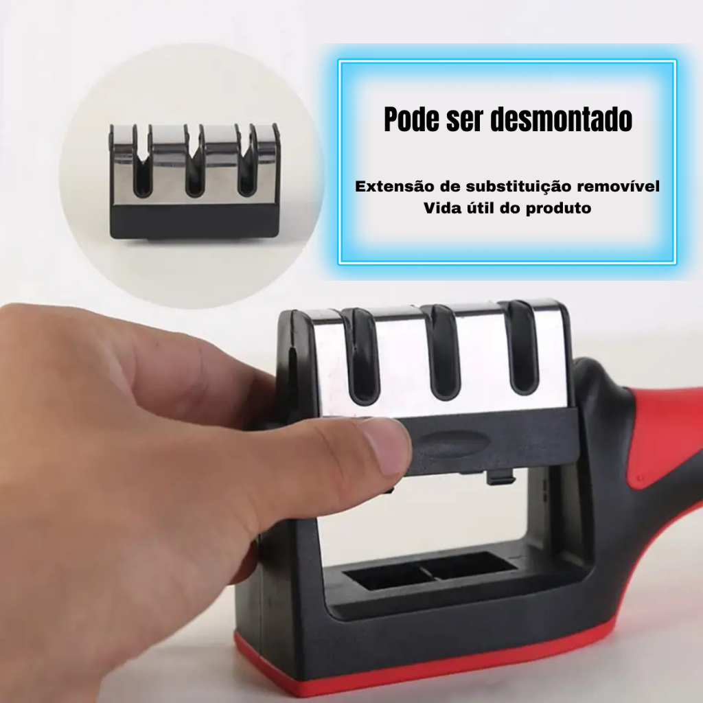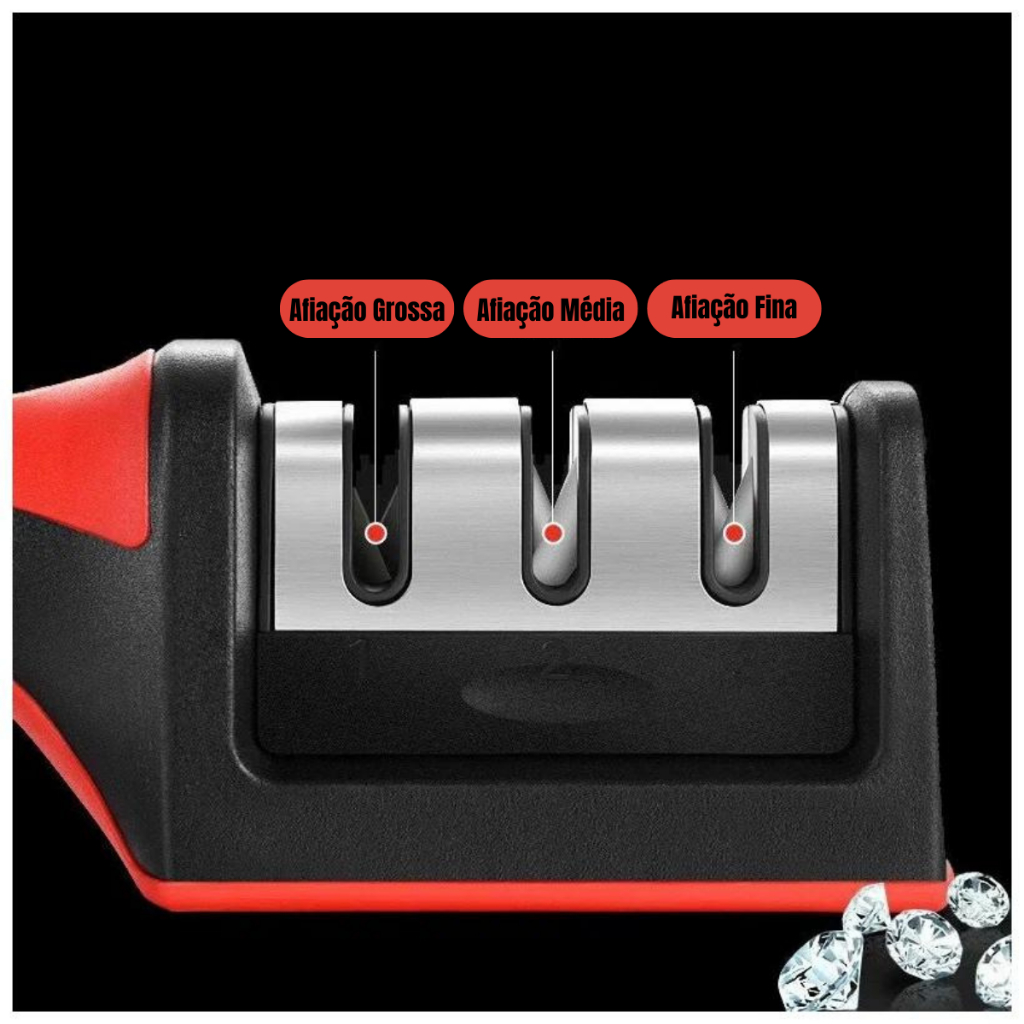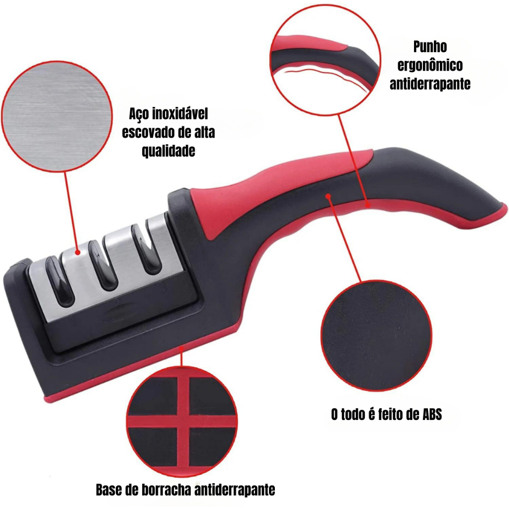 Afiador De Facas Amolador Em Aço Inox de Base Emborrachado Com 3 Afiadores Profissional