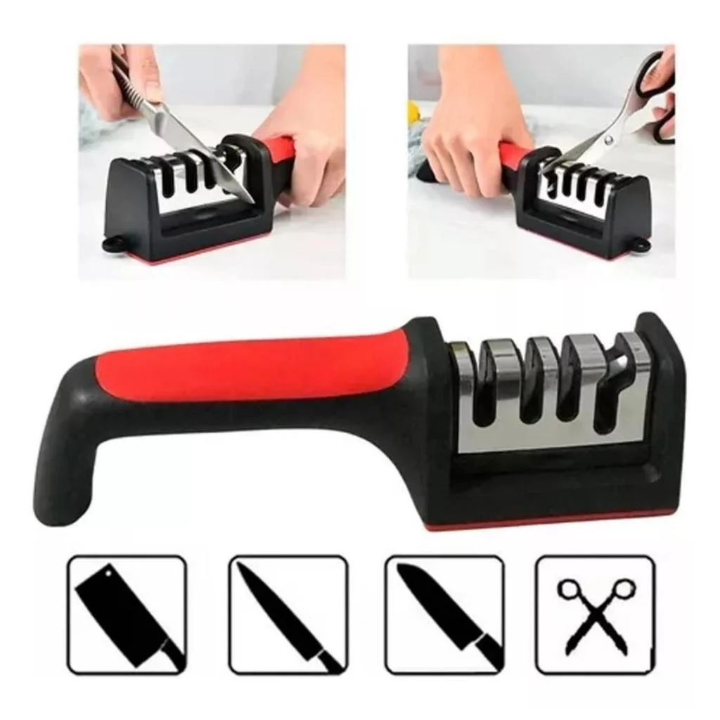 Afiador Profissional 4 em 1 – Facas e Tesouras em Aço Inox, Seguro e Prático