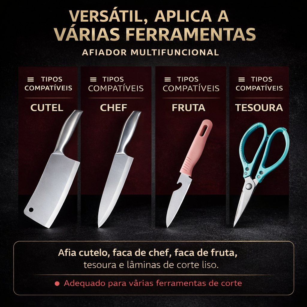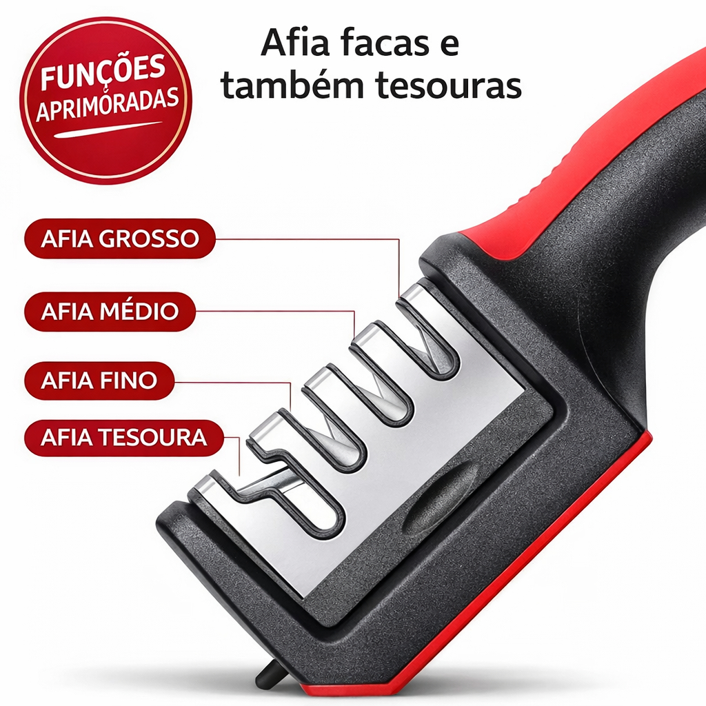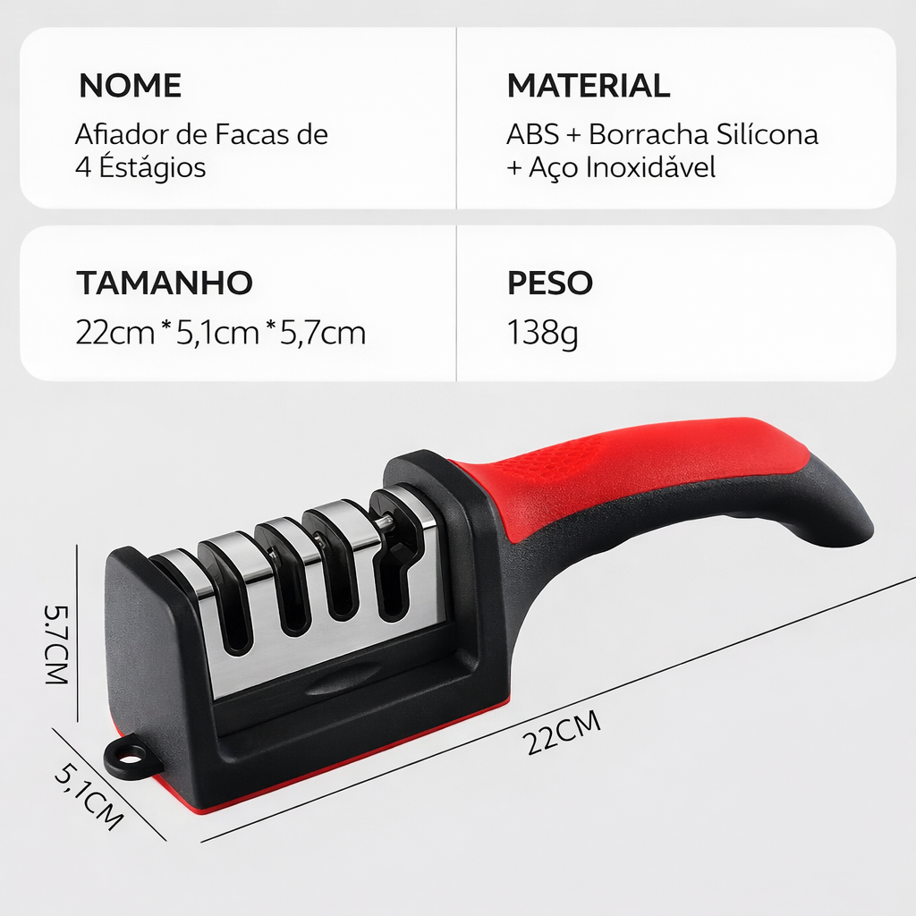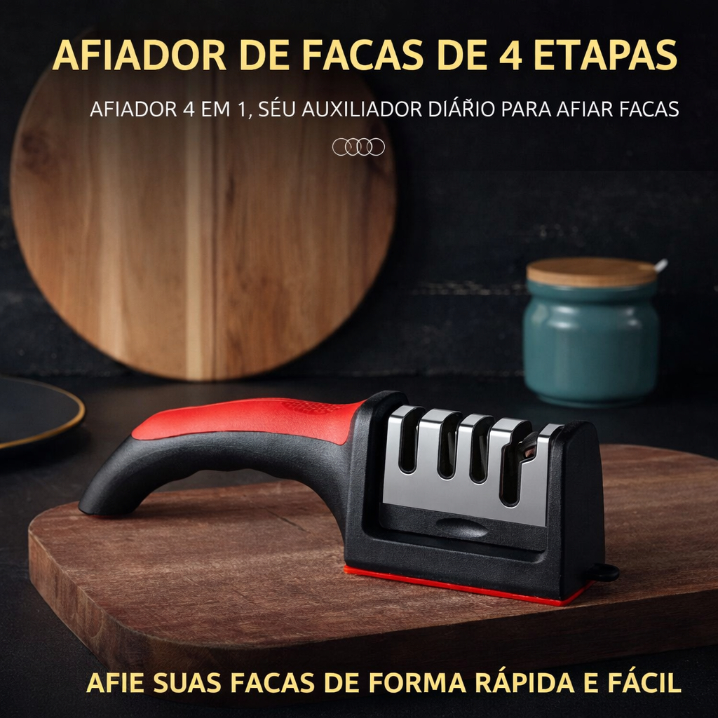 Afiador de Facas Profissional 4 Estágios Aço Inox Amolador Manual Cozinha Afia Faca e Tesoura