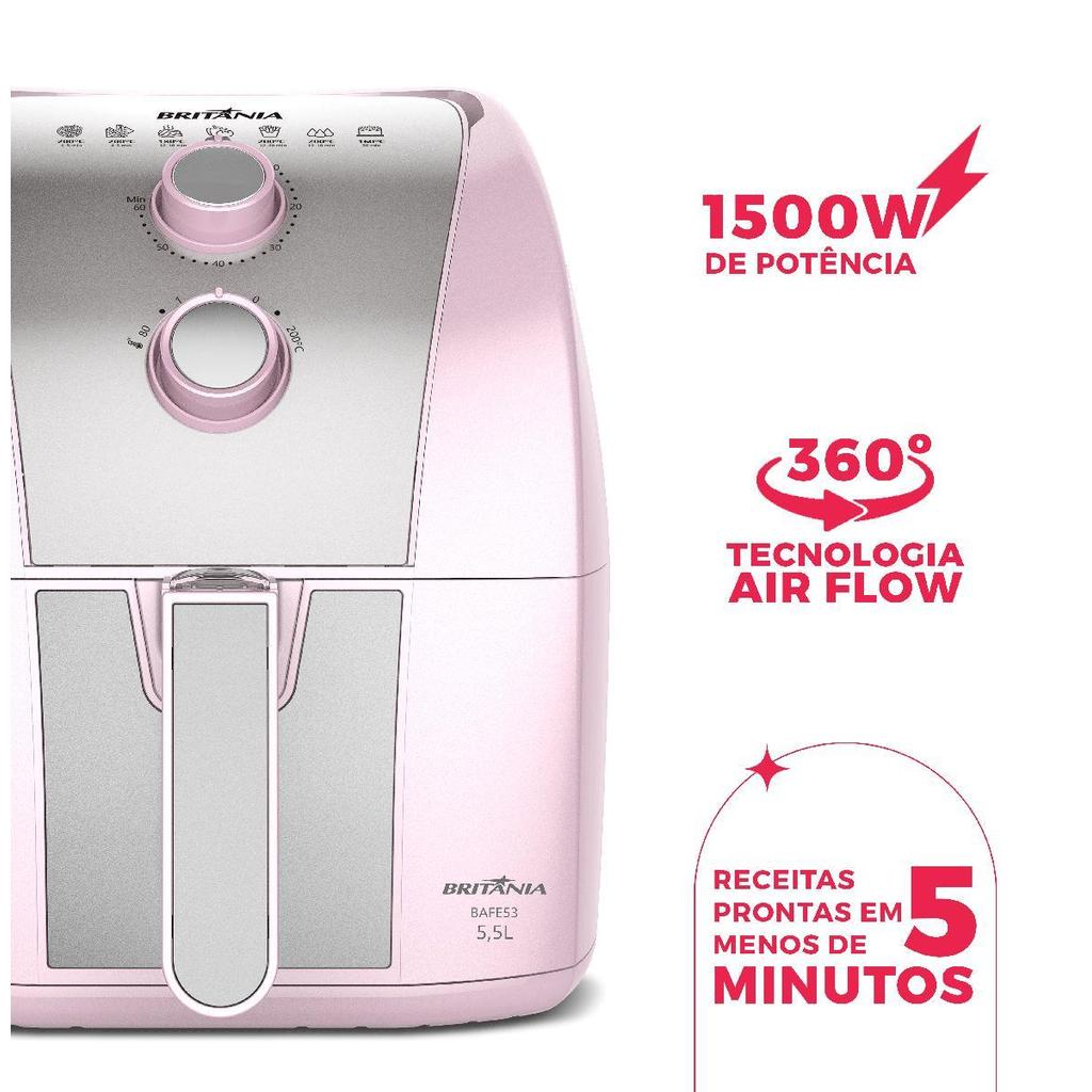 Air Fryer Rosa Britânia 5,5L Cesto Pinkstone 1500W BAFE53