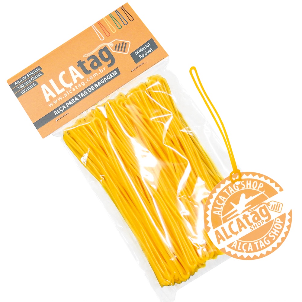 Alça Tag Mala Bagagem Silicone 16 cm cordão Amarelo 600und