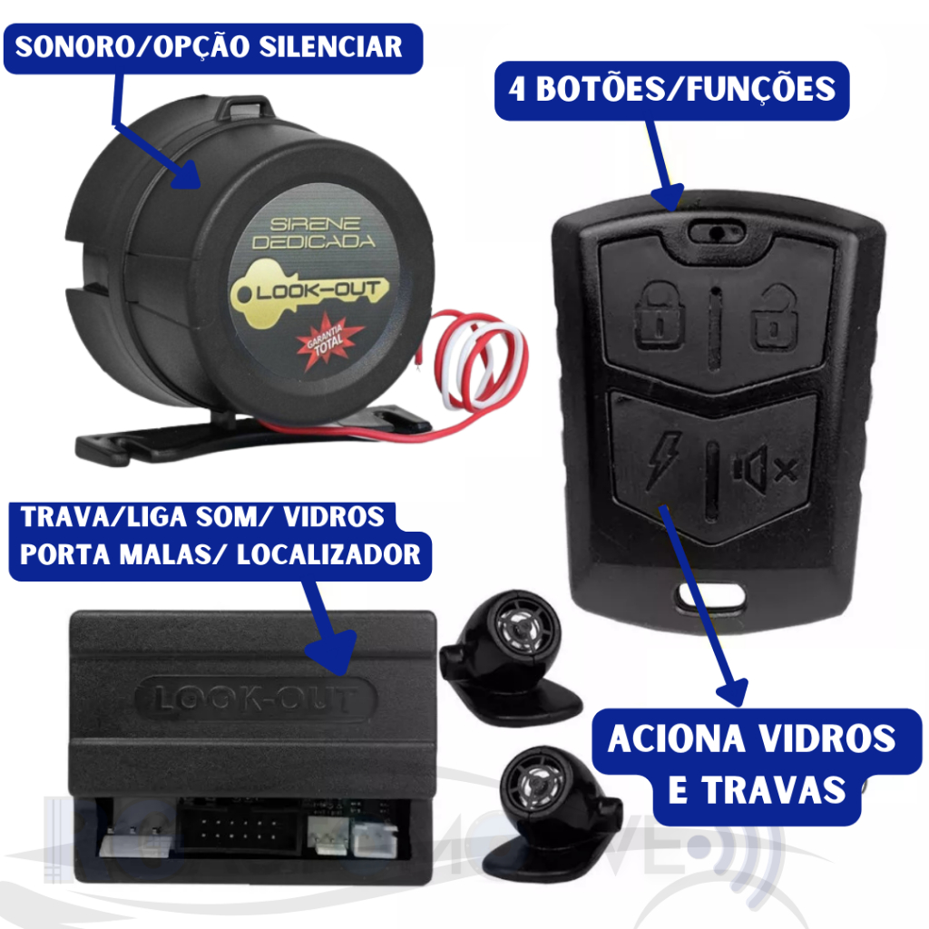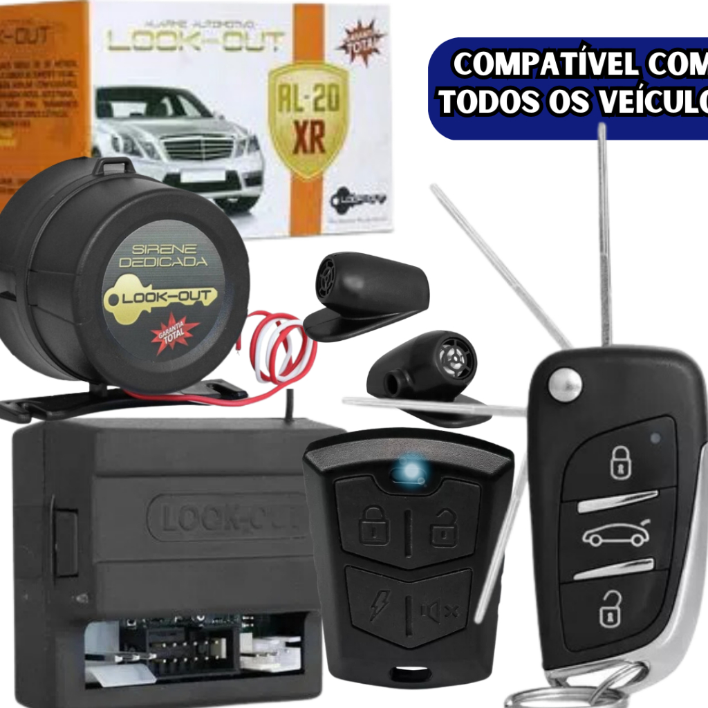Alarme Automotivo Veicular Universal Chave Canivete + Controle Levanta vidros Look Out Al20XR