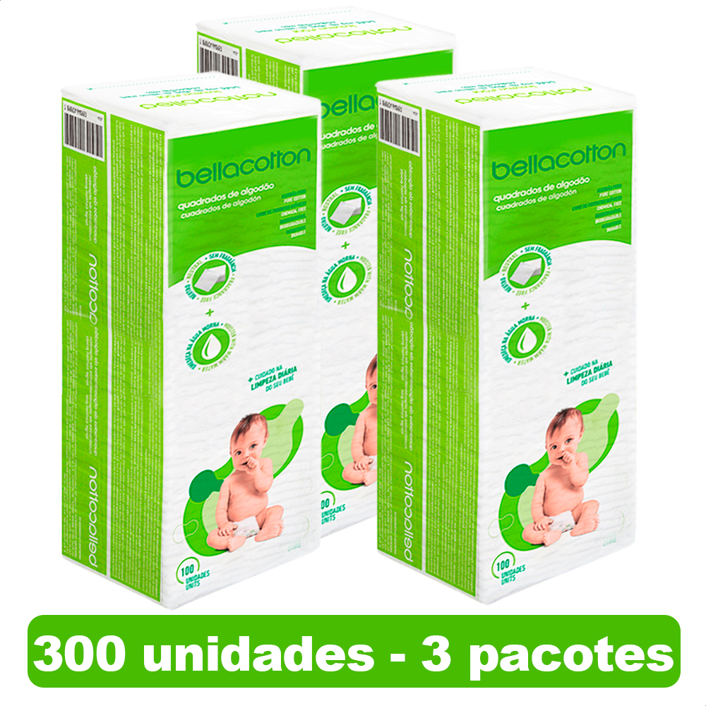 Algodão Quadrado Bellacotton 300 unidades para Bebês