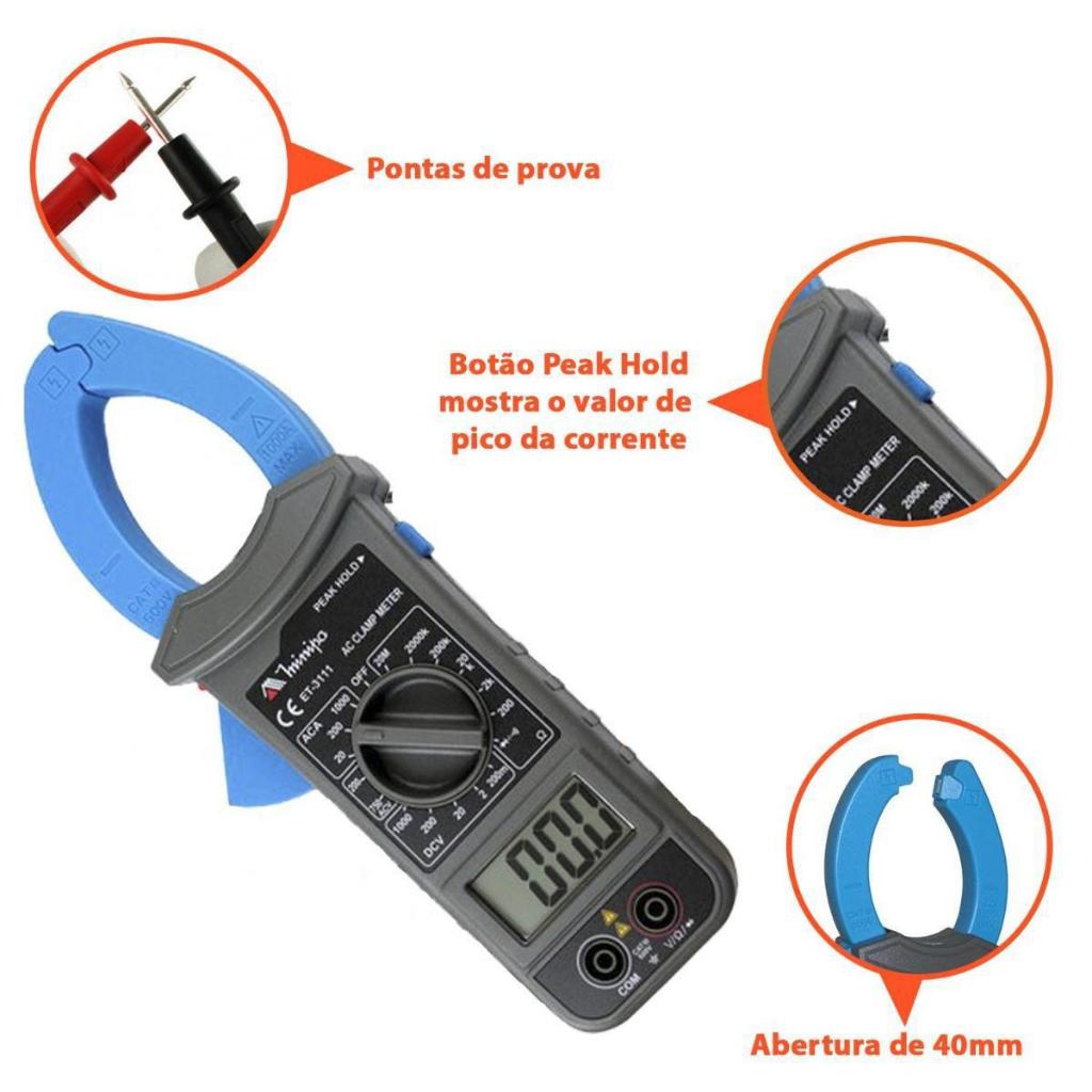 Alicate Amperímetro Digital Cat 3 Et-3111 Minipa Com Bolsa
