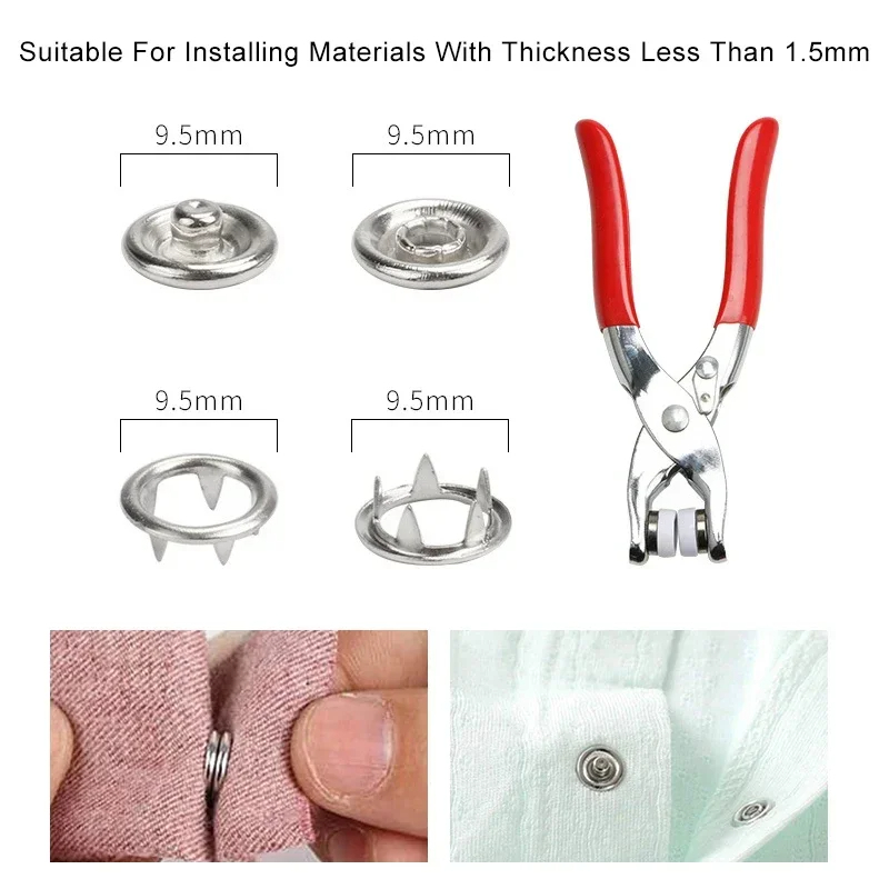 Alicate Aplicador Para Botao De Metal De Pressao Roupa Bebe com 150 botões de roupas
