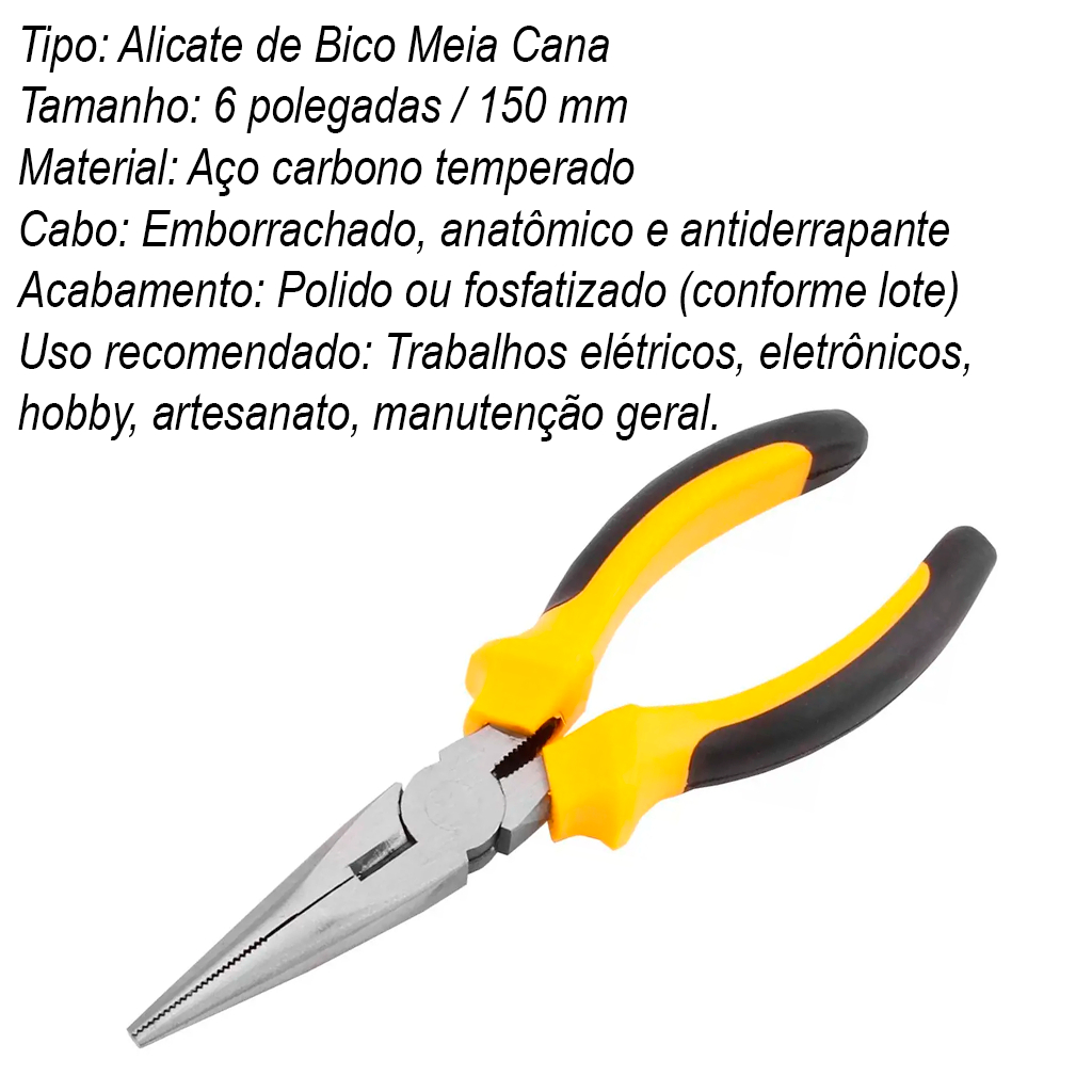 Alicate De Bico Meia Cana Reto 6 Pol. Cabo Emborrachado Uso Profissional Resistente