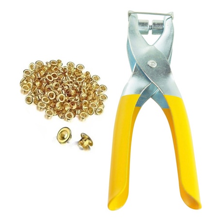 Alicate Para Colocar Ilhos Manual + 100 Ilhoses Dourados