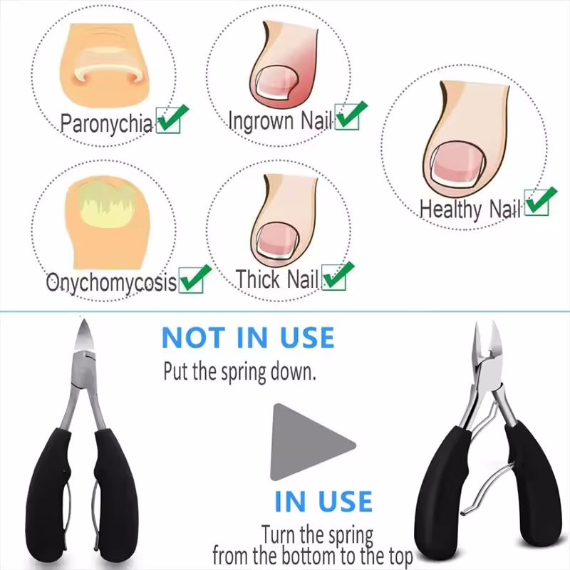 Alicate profissional de unhas para pés, ferramentas de pedicure em aço inox com lâmina curva e afiada.
