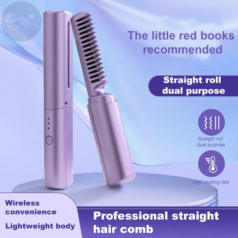 Alisador de cabelo sem fio Escova de ar quente Secador de cabelo elétrico recarregável por USB