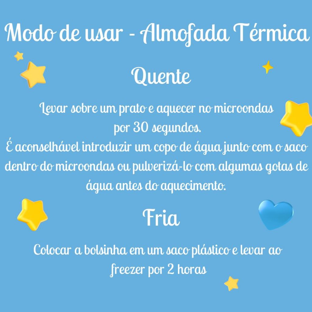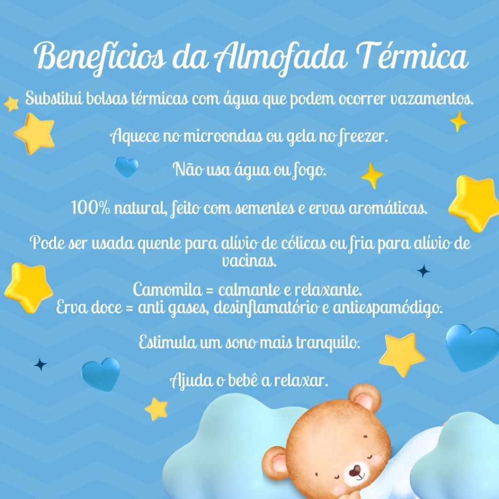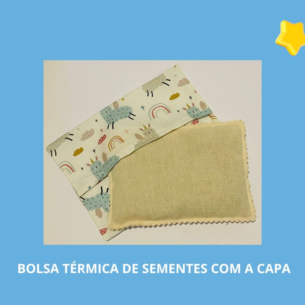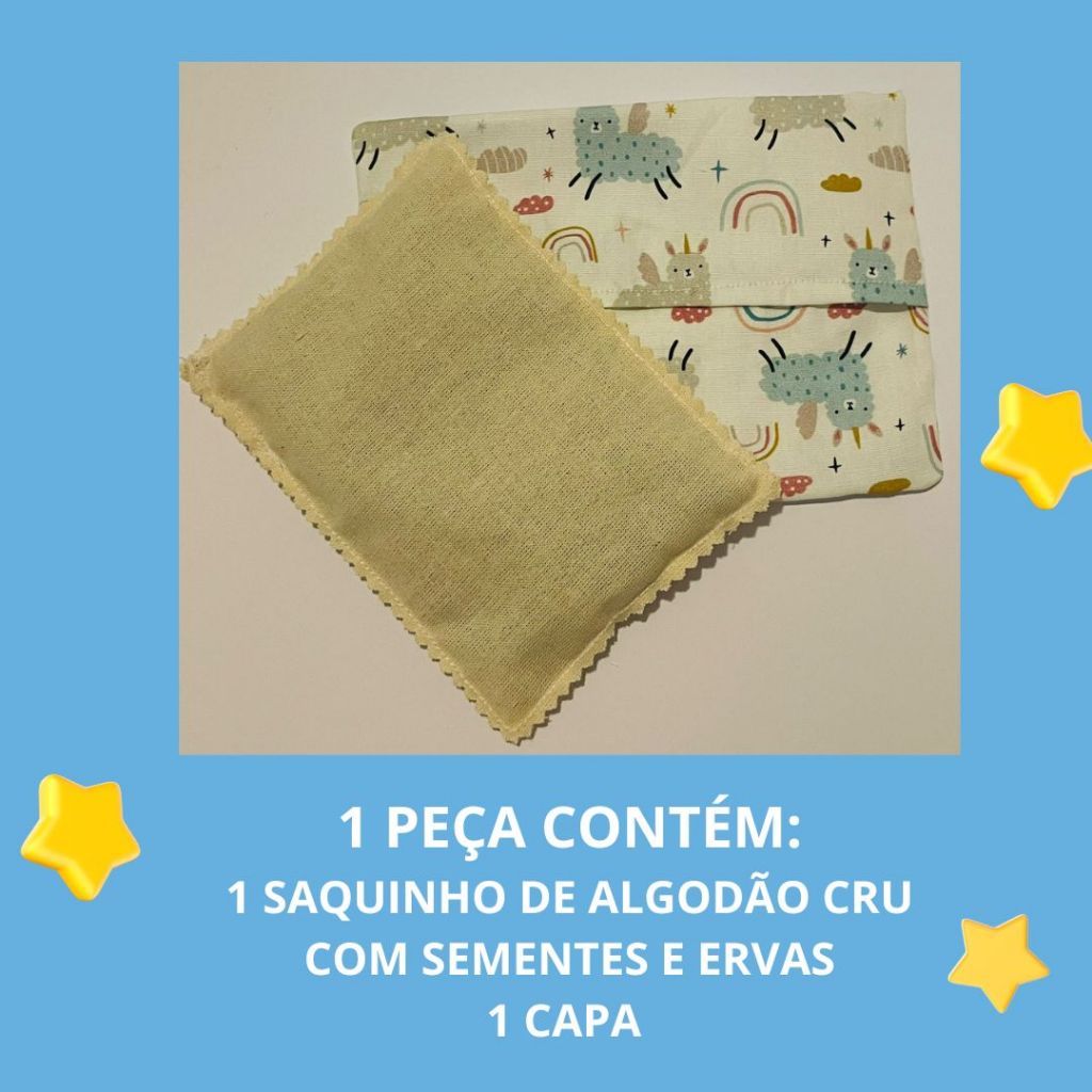Almofada ANTICÓLICA - Bolsa Térmica de Ervas Sementes para bebê - Antialérgico - Reutilizável