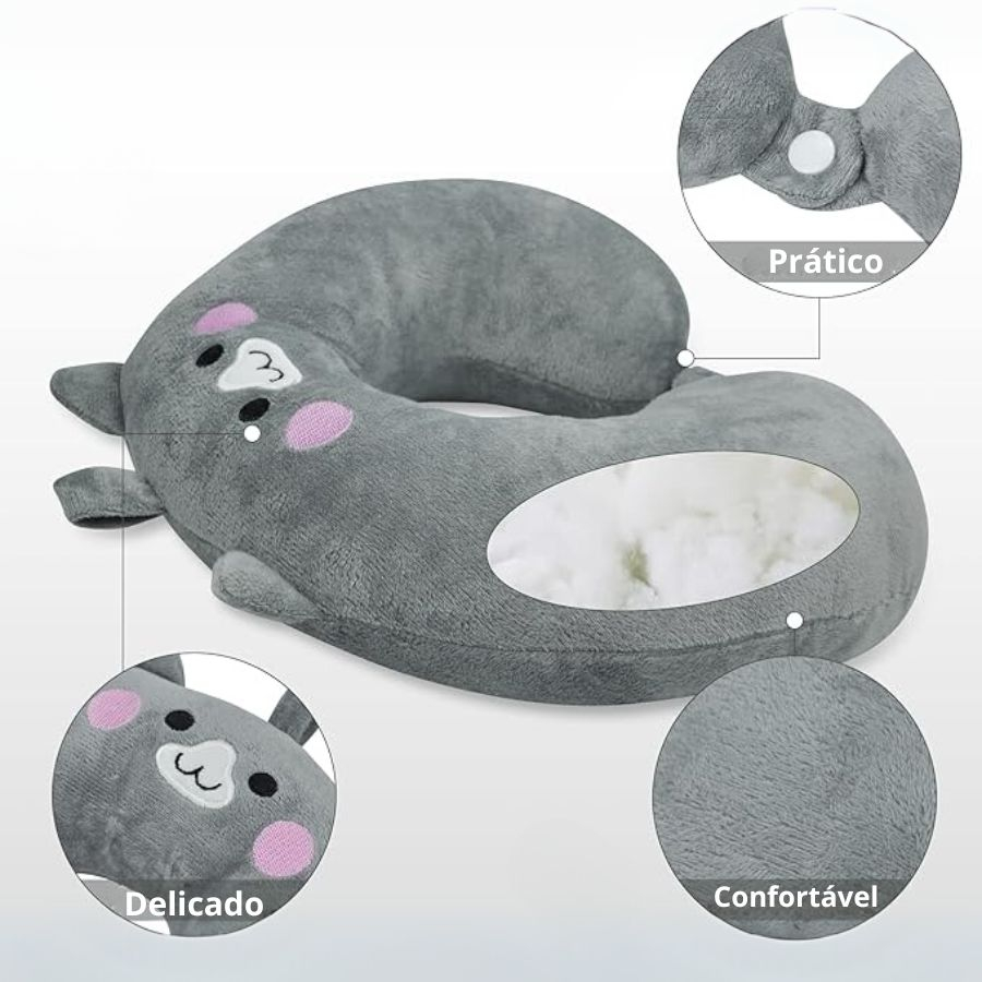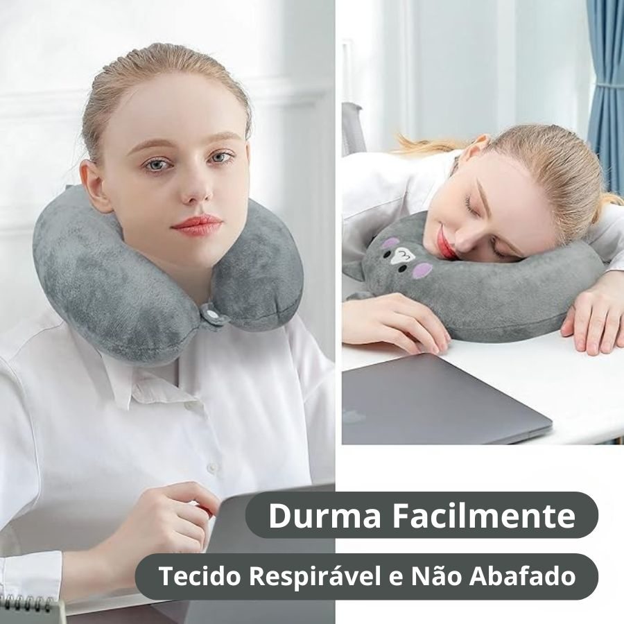 Almofada De Pescoço Travesseiro De Viagem Macio Confortável Infantil Adulto - Kit com Tapa Olho
