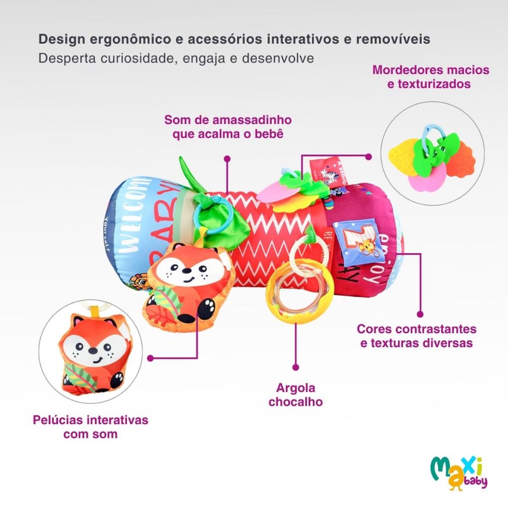 Almofada Rolinho Atividades Para Bebê com Mordedor Maxi Baby