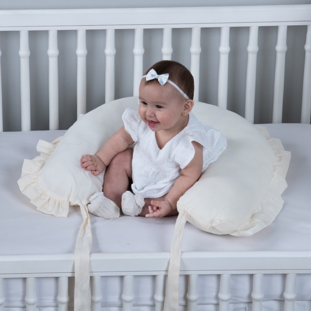 Almofada de Amamentação com Babado e Laço Extra Grande Algodão ziper e refil Diversas Cores Unissex