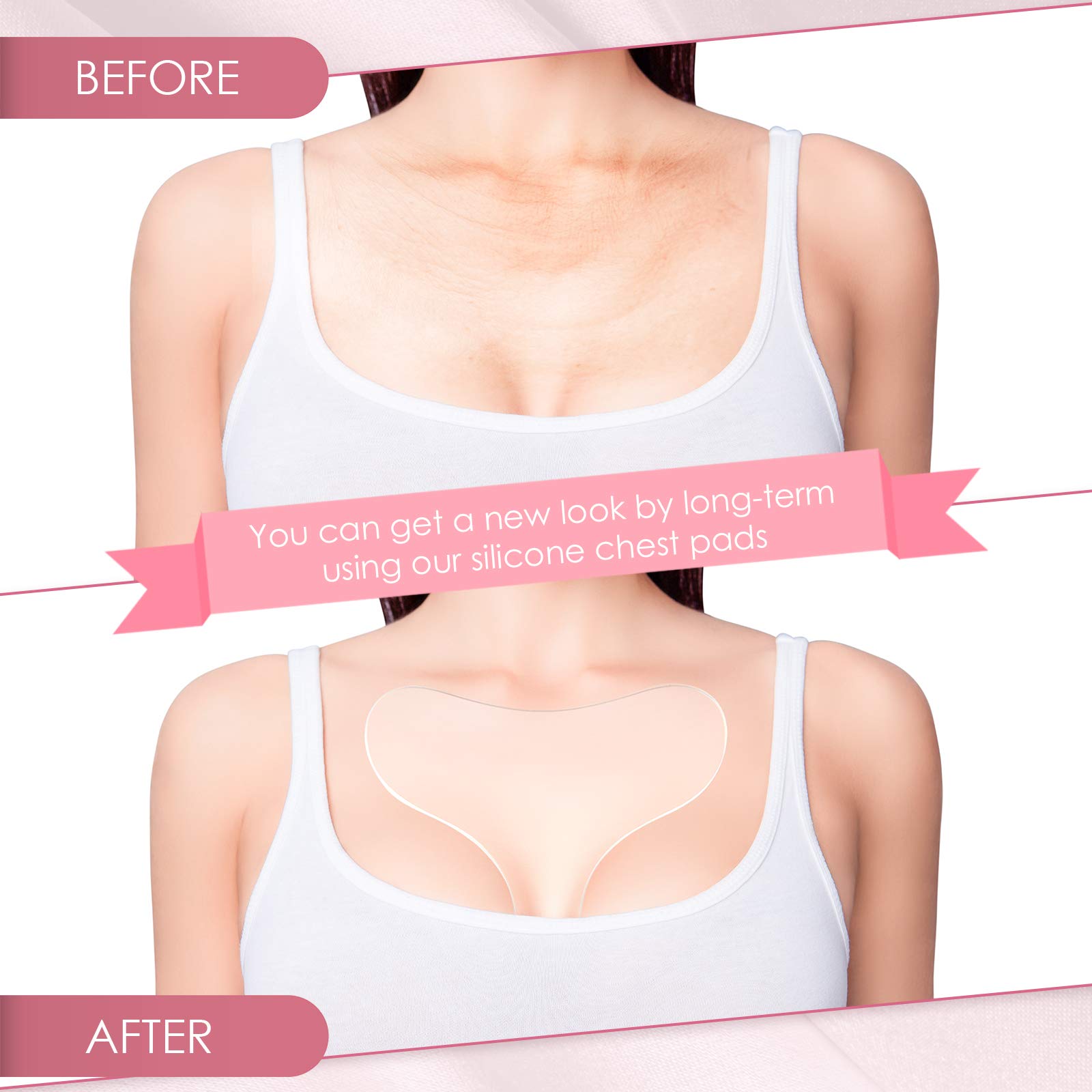 Almofadas de colarinho de peito em formato T de silicone, adesivo reutilizável para rugas para meninas e mulheres,