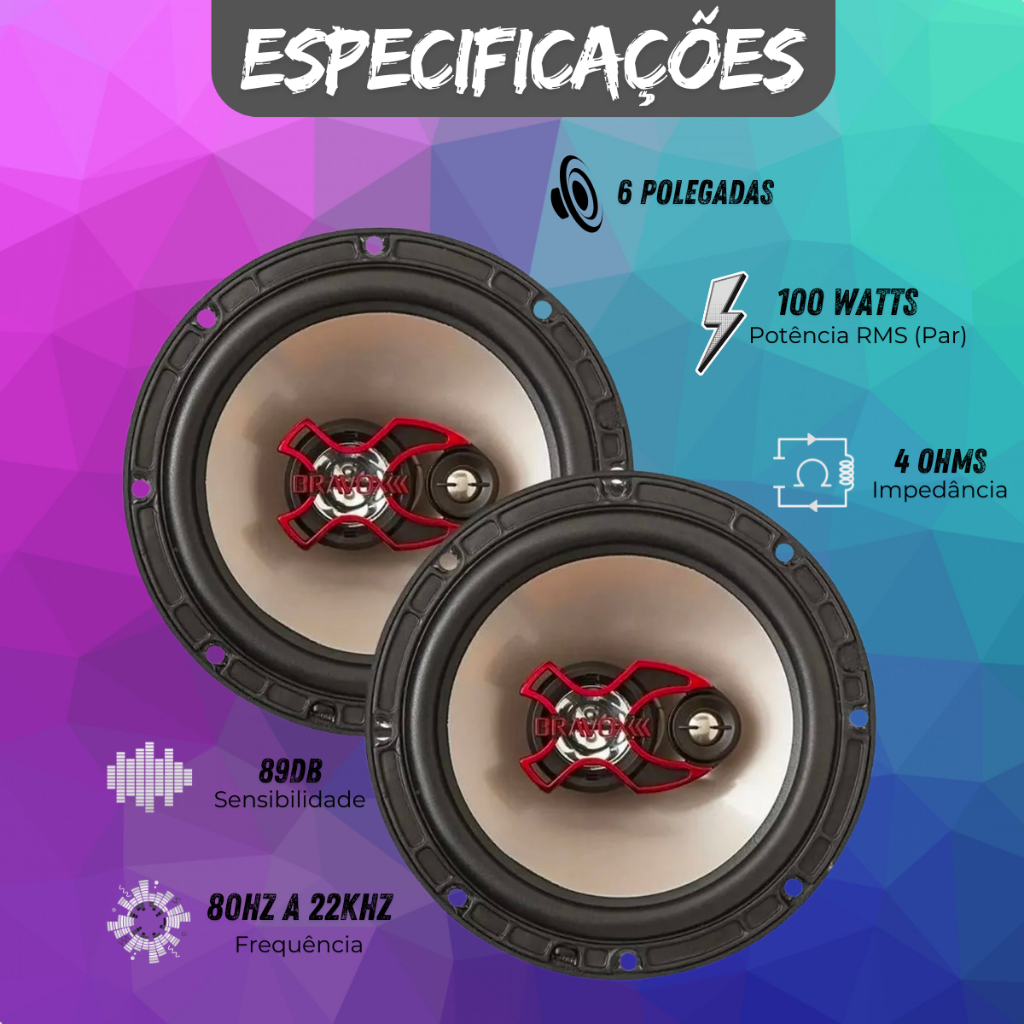 Alto Falante Bravox 6 Polegadas Automotivo Triaxial B3x60x 100 Watts RMS o Par