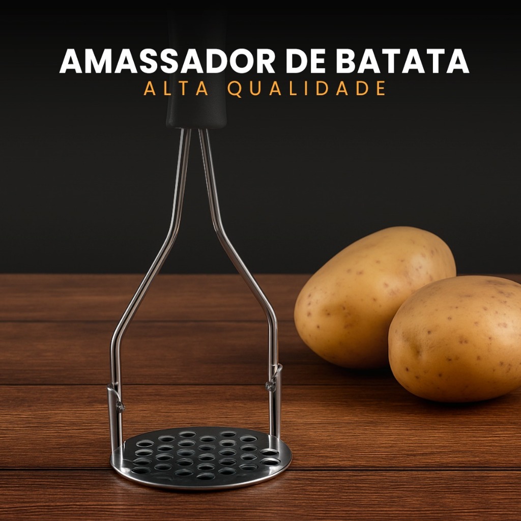 Amassador Espremedor de Batata Inox Manual Resistente com Pressão Rápida