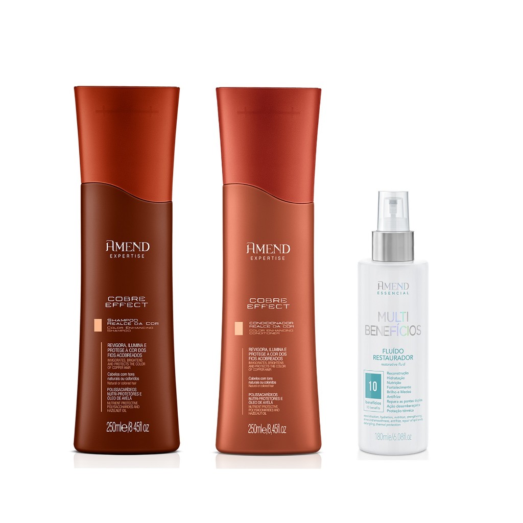 Amend Expertise KIT Cobre Effect Shampoo e Condicionador 250ml + Fluído Multi-Benefícios 180ml