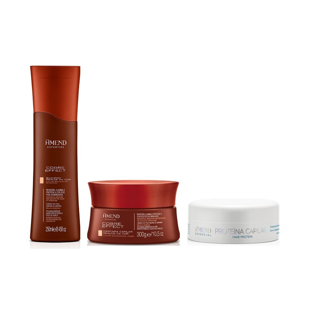 Amend Kit Cobre Effect Shampoo 250ml + Máscara 300g + Essencial Proteína Capilar 100g