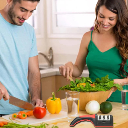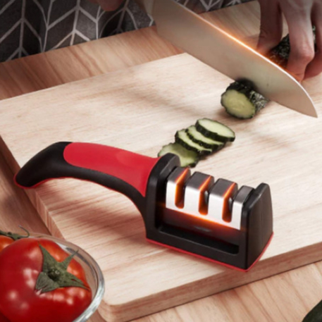 Amolador Afiador De Facas 3 em 1 Em Aço Inox Profissional Com 3 Afiador Premium Canivete