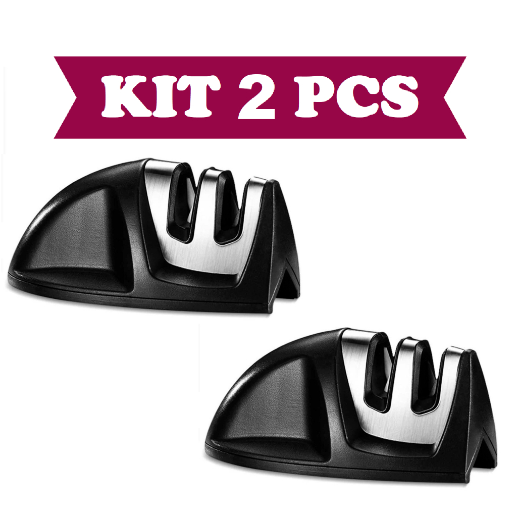Amolador Afiador De Facas Em Aço Inox Com 2 Afiadores Amolador De Faca Preto
