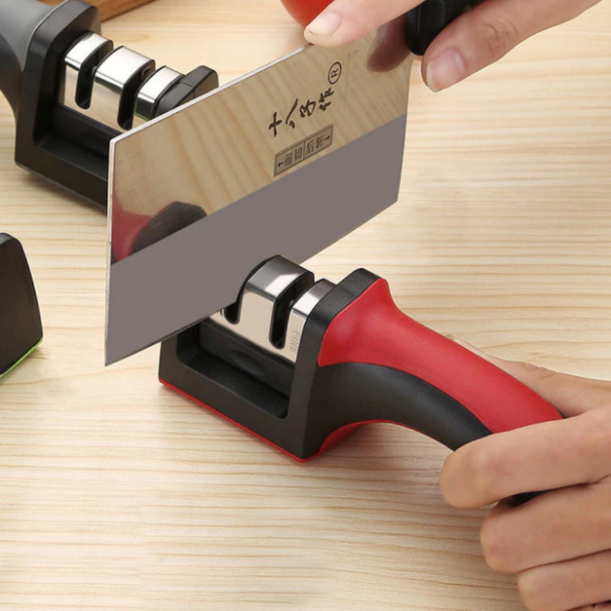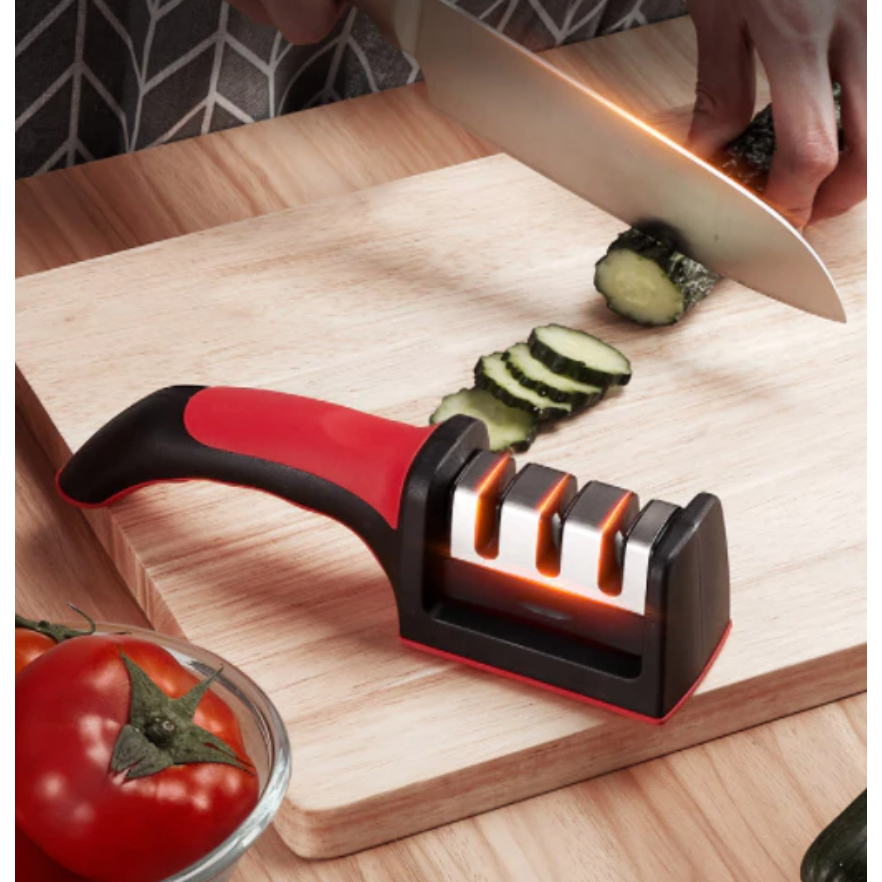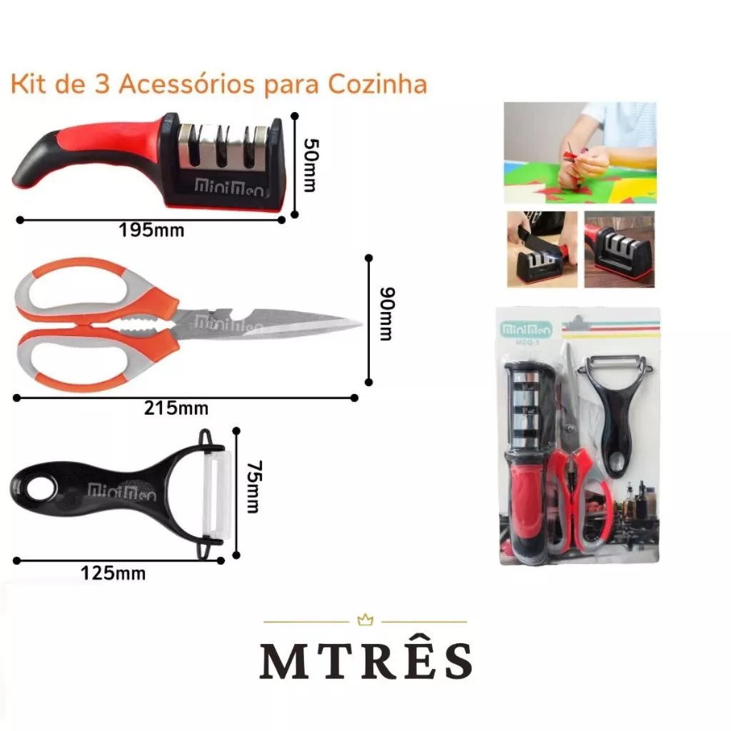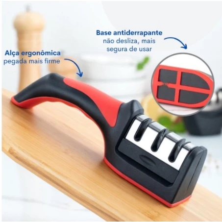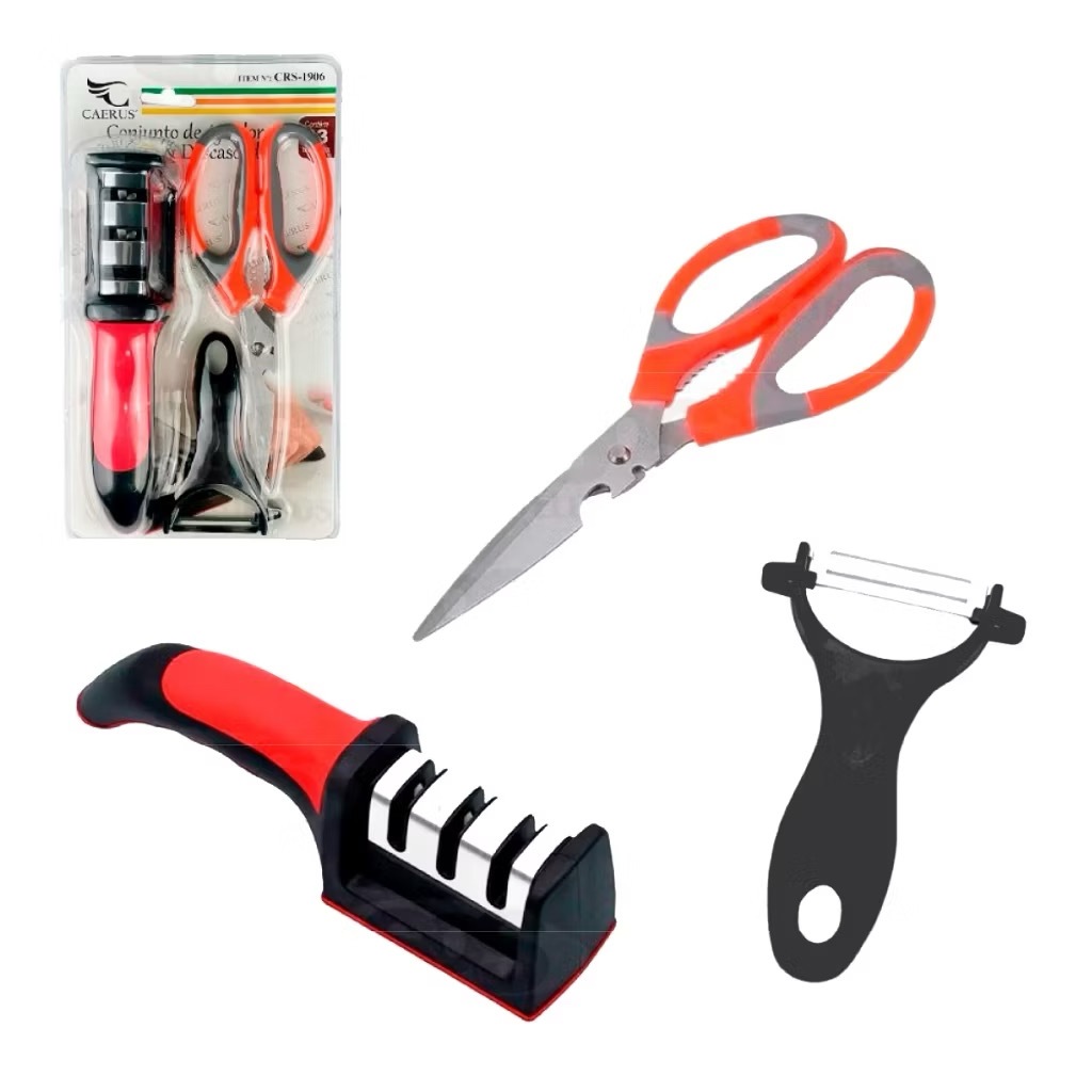 Amolador Afiador De Facas Em Aço Inox Com 3 Afiadores Com Tesoura Descascador Cozinha
