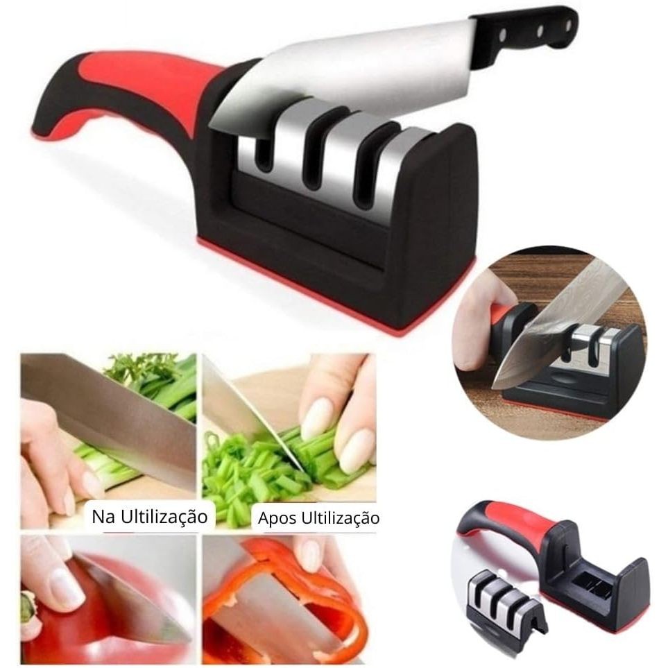 Amolador Afiador De Facas Em Aço Inox Com 3 Afiadores Profissional