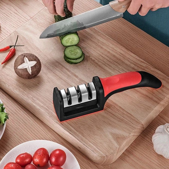 Amolador Afiador De Facas Em Aço Inox Profissional Com 3 Afiadores Profissional-Smie