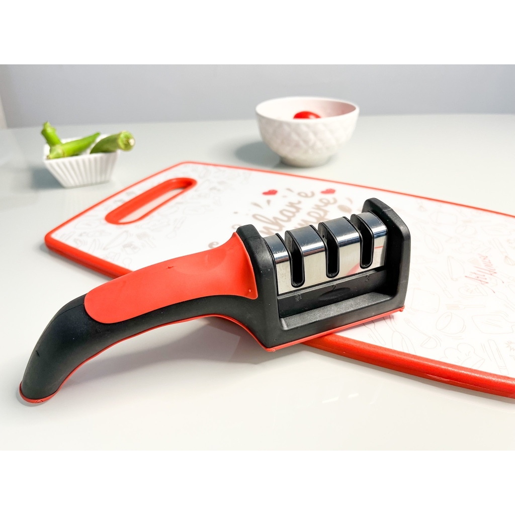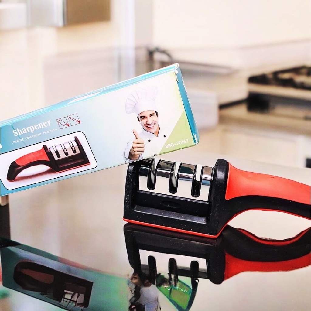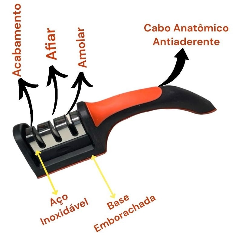 Amolador e Afiador para Faca, Tesoura Profissional com 3 Níveis de Afiadores em Aço Inox