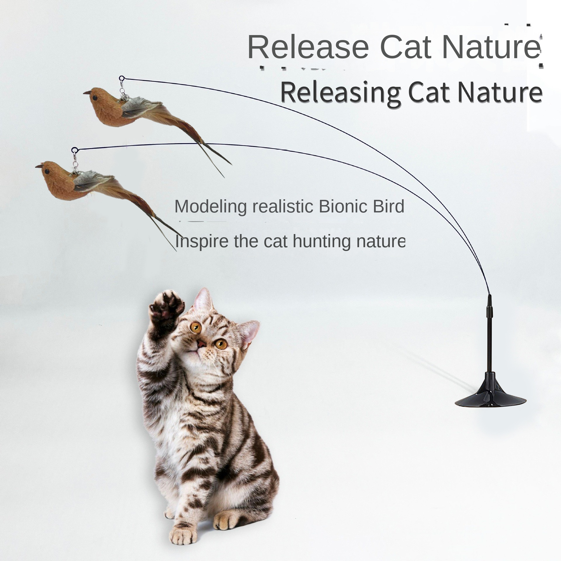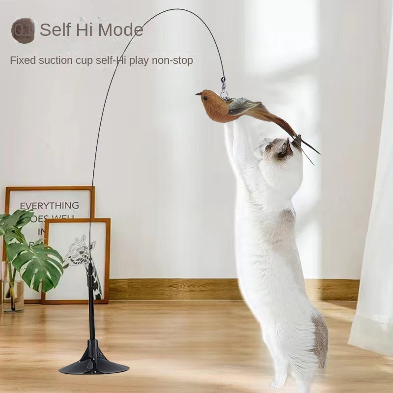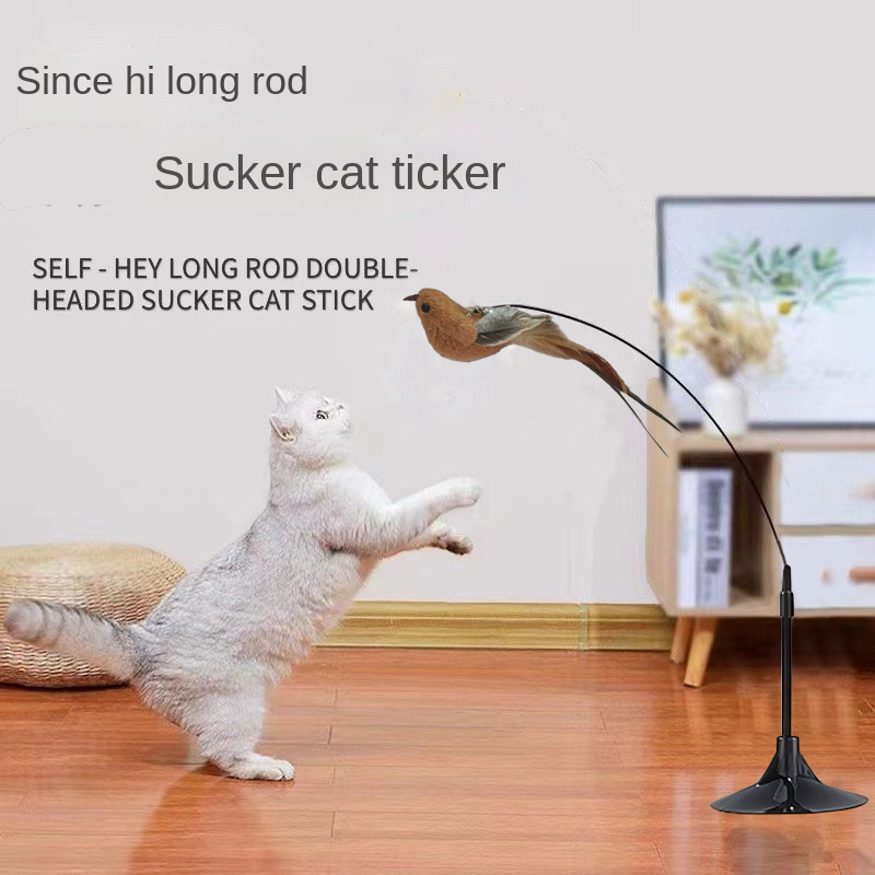 Amor Pássaro Voador Gato Teaser Brinquedo Ventosa Fio De Aço Haste Longa Pena Vara Auto Jogar Interativo Para Gatos