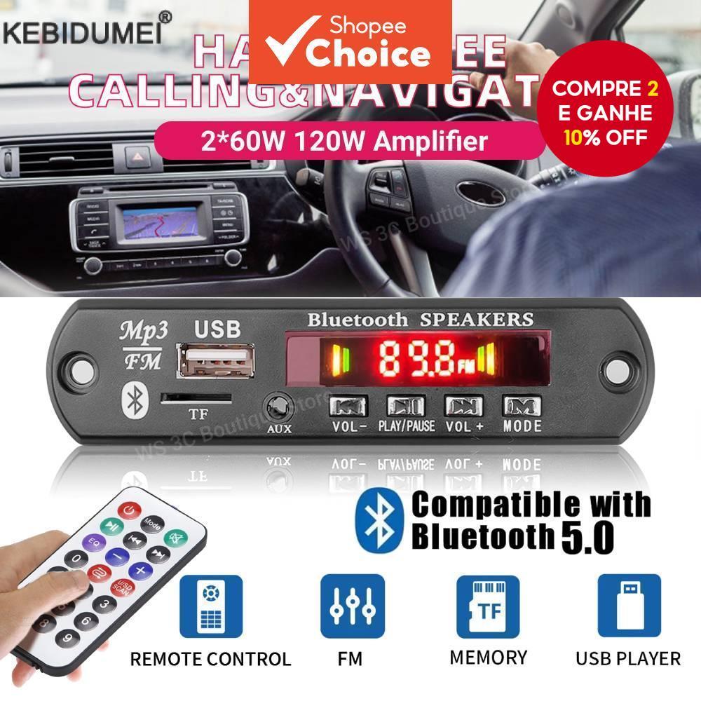 Amplificador 120W Bluetooth 5.0 Placa Decodificadora MP3 12V Viva-Voz Áudio Para Carro USB TF Rádio FM Pro