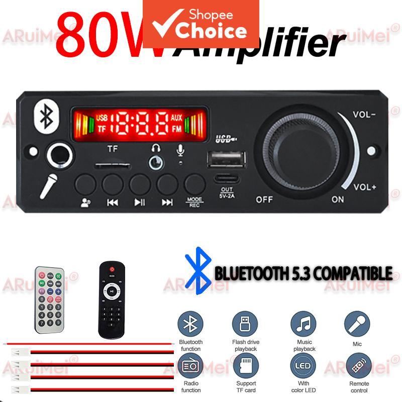 Amplificador 80W 2x40W Bluetooth 5.0 DC 7-24V Leitor De MP3 Para Carro Gravação FM USB