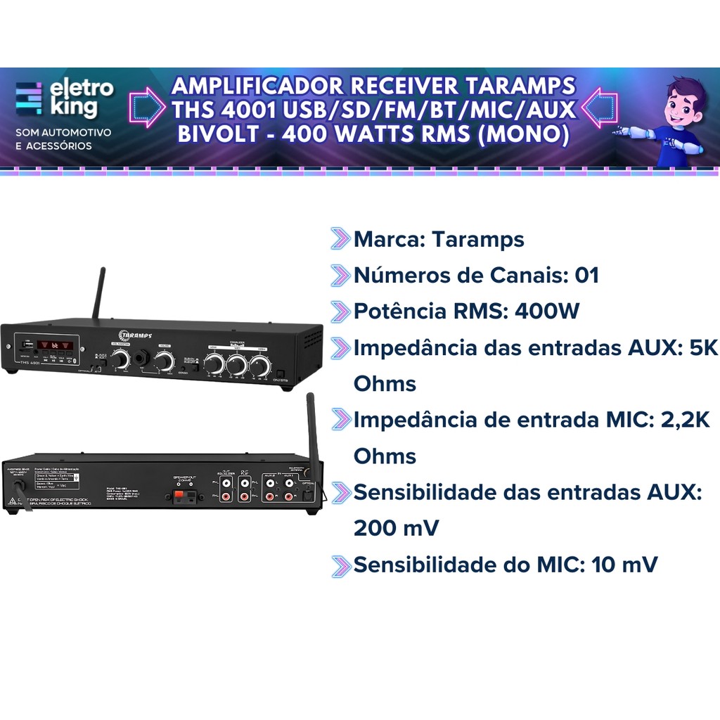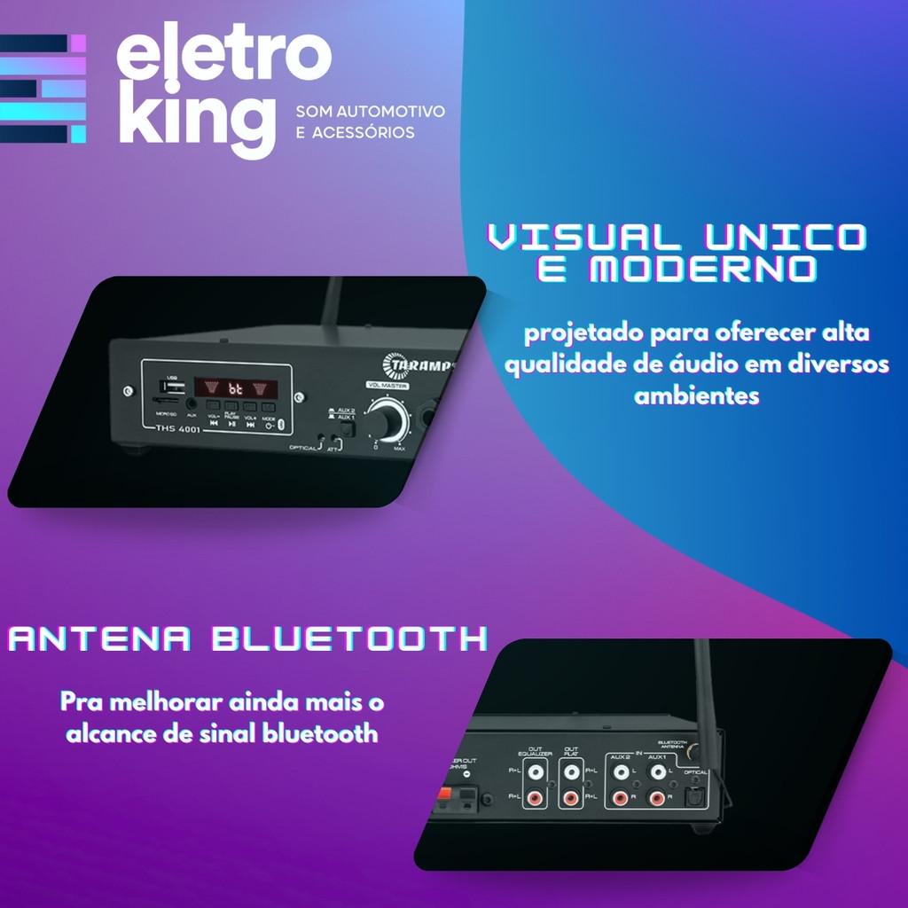 Amplificador Receiver Taramps Som Ambiente 400w Bluetooth