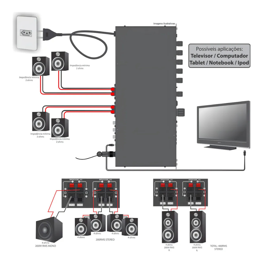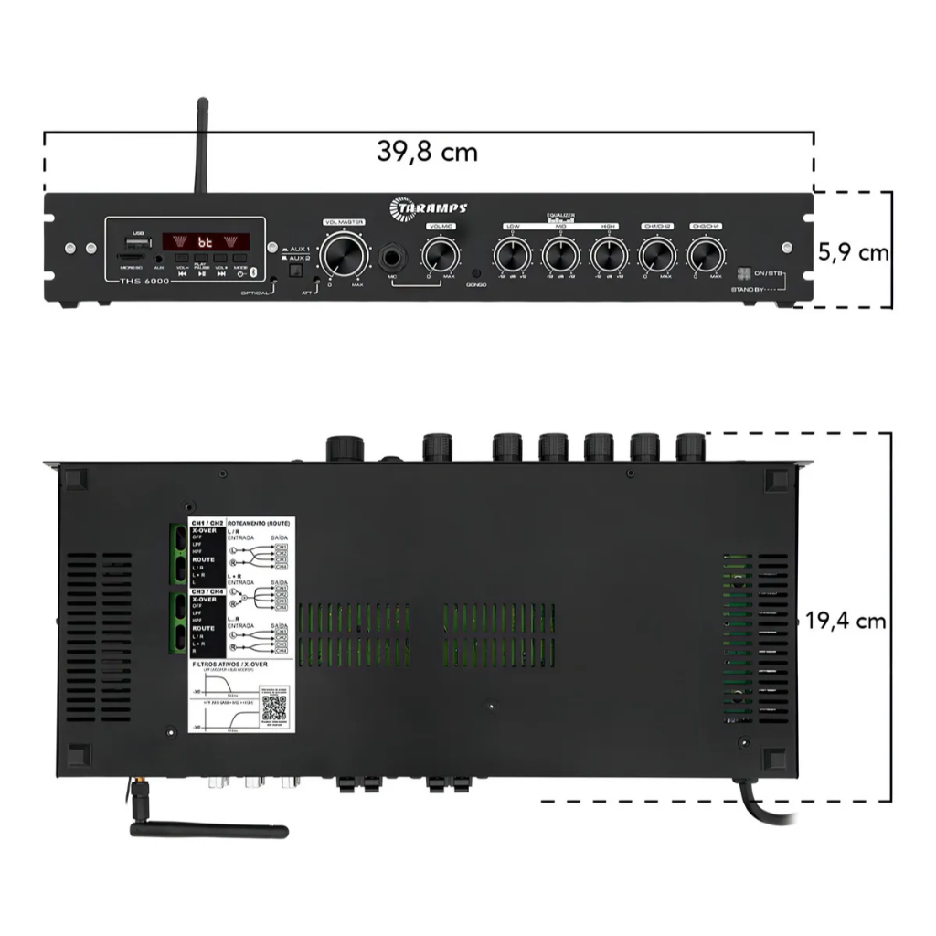 Amplificador Receiver Taramps Ths6000 400w 4 Canais Bivolt